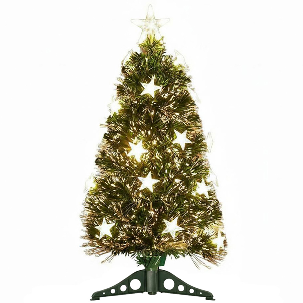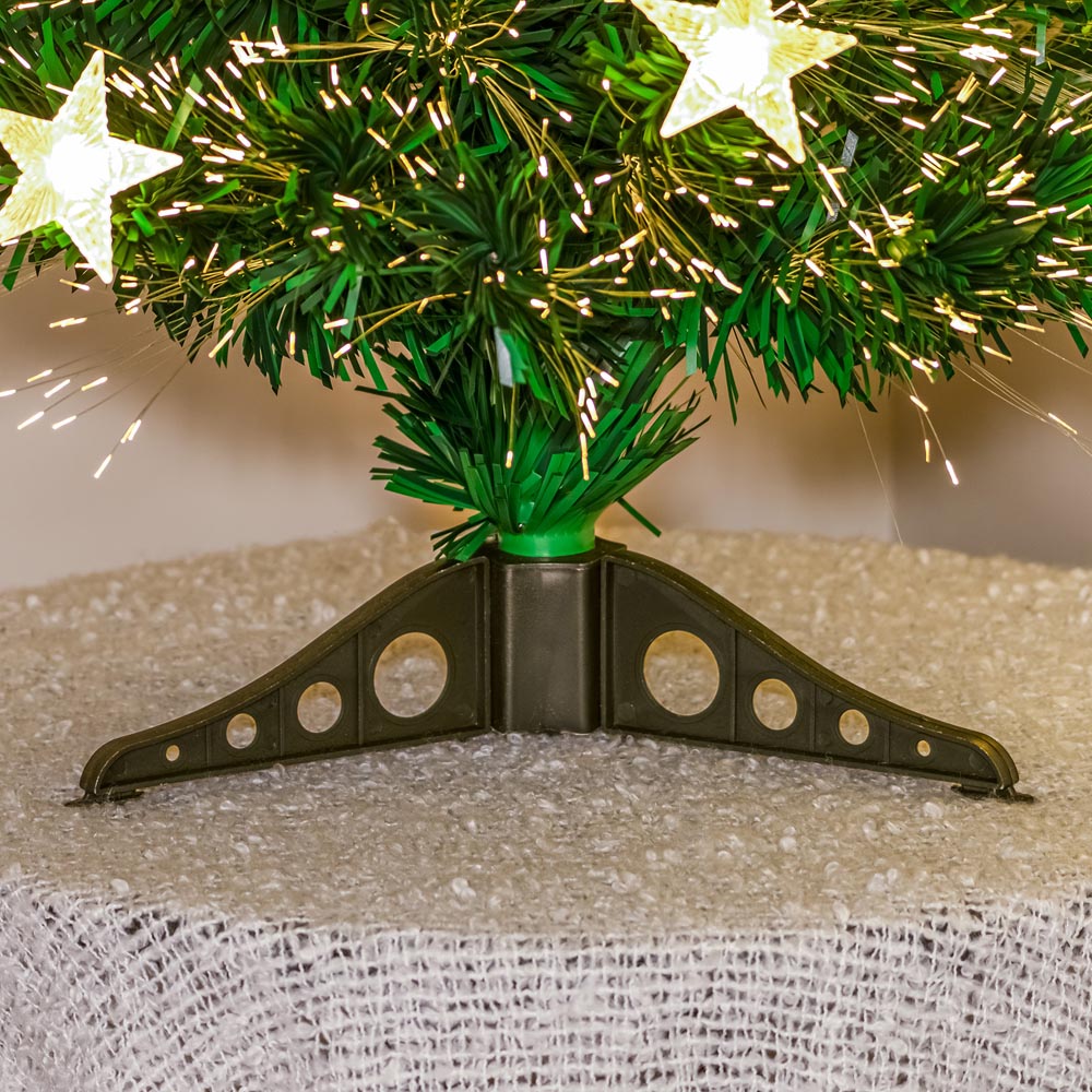 Sparkle up your festive space with a small fibre optic Christmas tree featuring warm white lights and glowing LED stars that instantly bring holiday cheer to any room. Standing at two feet tall, this tabletop green fibre optic Christmas tree with LED stars is ideal for compact spaces or as a charming centrepiece. Warm white fibre optics weave through the lush green branches, complemented by decorative acrylic stars and a bright star topper. With four lighting functions, including steady and flashing modes, you can tailor the ambience to suit your mood. Easy to assemble, it comes with a stand and a long cable for convenient placement, so you’ll be relaxing and enjoying the glow in no time.