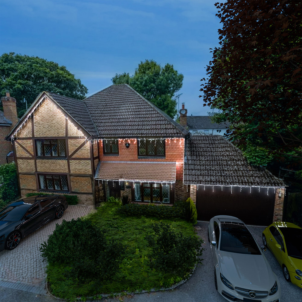 Create a magical festive glow and let every evening sparkle with twinkling Christmas icicle lights, featuring energy-efficient LEDs in a choice of white or warm white on a crisp white cable, ideal for transforming gardens or living spaces into a winter wonderland both indoors and outdoors.