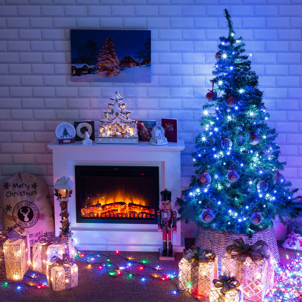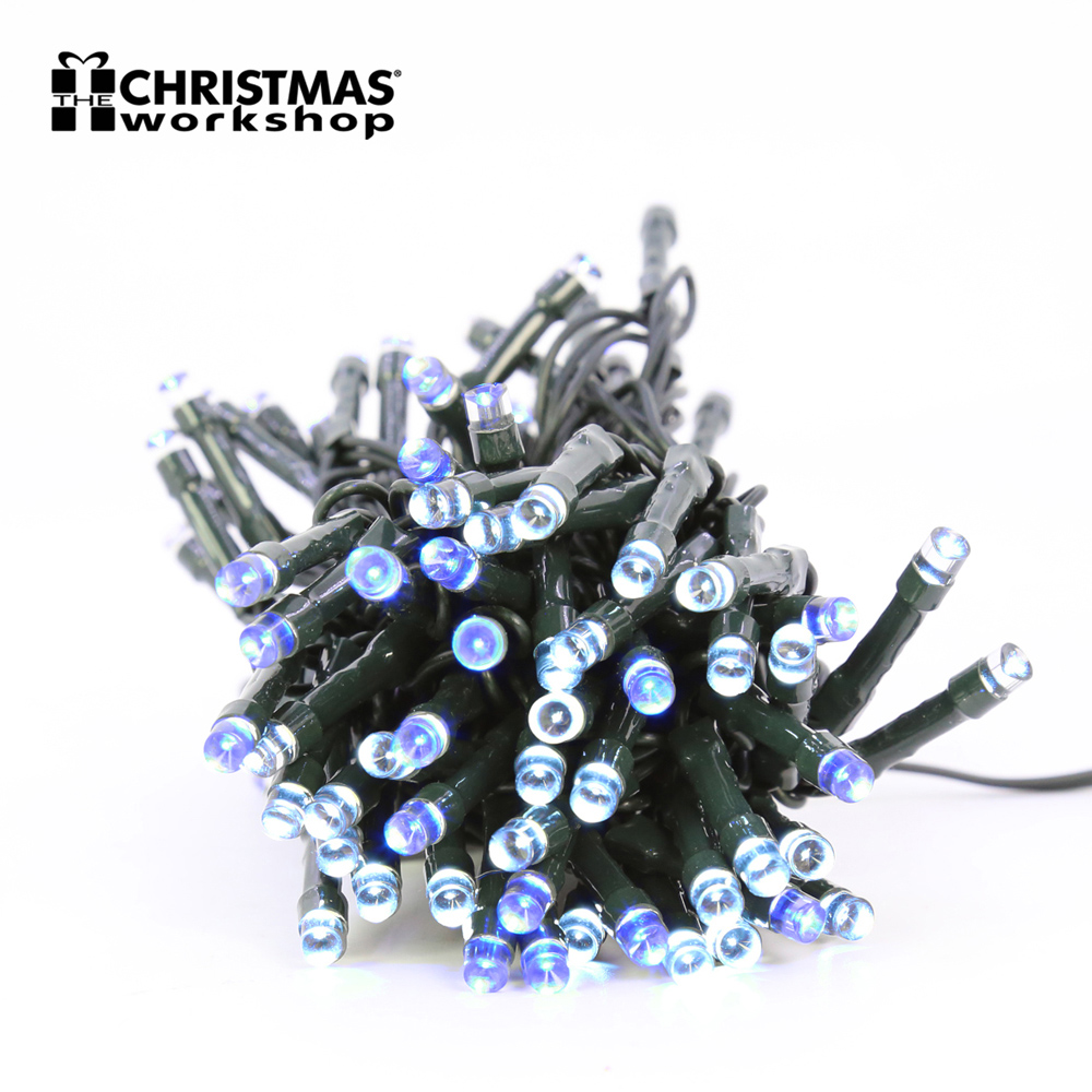 Light up your festive season with The Christmas Workshop 100 Blue and White LED Chaser Light. This bright blue and white Christmas chaser light with 100 LED bulbs is ideal for adding a festive touch to your tree, home and outdoor spaces. Stretching across 6.9 metres, this versatile string light is perfect for covering large areas like Christmas trees, outdoor trees, and more. Whether you are decorating for weddings, birthday parties or other family events, this multi-functional light provides a blue and white glow. With eight different light settings including combination, sequential, chaser flashing, twinkle flashing, waves, slow glow, slow fade and steady on, you can customise the ambience to suit any occasion. Please note that the transformer and mains power box should always be kept indoors and dry, even when the lights are used outdoors. This energy-efficient LED chaser light offers the illumination you need, enhancing both indoor and outdoor spaces.