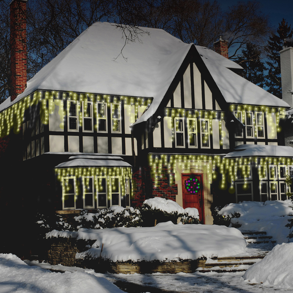 Get the festive season glowing with The Christmas Workshop 2000 Warm White LED Icicle Chaser Light. This Christmas light is the perfect way to bring holiday cheer to your home, creating that magical festive atmosphere you desire. Measuring 47.8 metres in length, this light features 2000 warm white LEDs shaped like icicles to set the mood for those cold winter nights, making everything feel even more festive. It also offers a 10 metre gap between power source and the 47.8 metres of LED lights, ensuring an easy setup with a seamless transition from socket to decoration. The light is mains operated, however, please note that while this light can be used outdoors, the transformer and power box must remain indoors to ensure safety. With eight different light settings including combination, sequential, chaser flashing, twinkle flashing, waves, slow glow, slow fade and steady on, you can customise the ambience to suit any occasion. While ideal for Christmas, this light is not just for the holiday season. It is also perfect for adding some sparkle to weddings, birthday parties, christenings or any other gathering where you want to add some extra sparkle. This light offers a more subtle glow, letting you decorate the outside of your house, or inside in the living room, kitchen or conservatory of your family home. Show off your festive spirit with this LED light while keeping the look elegant and sophisticated.