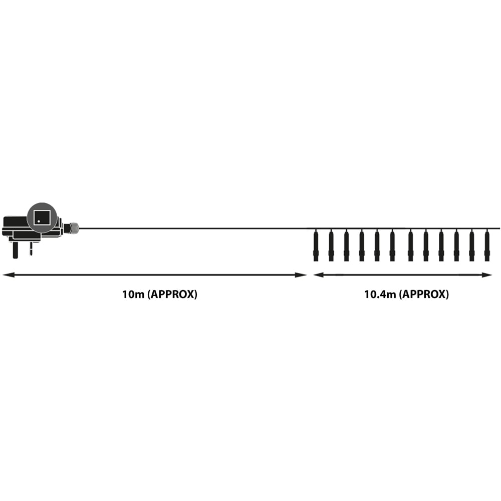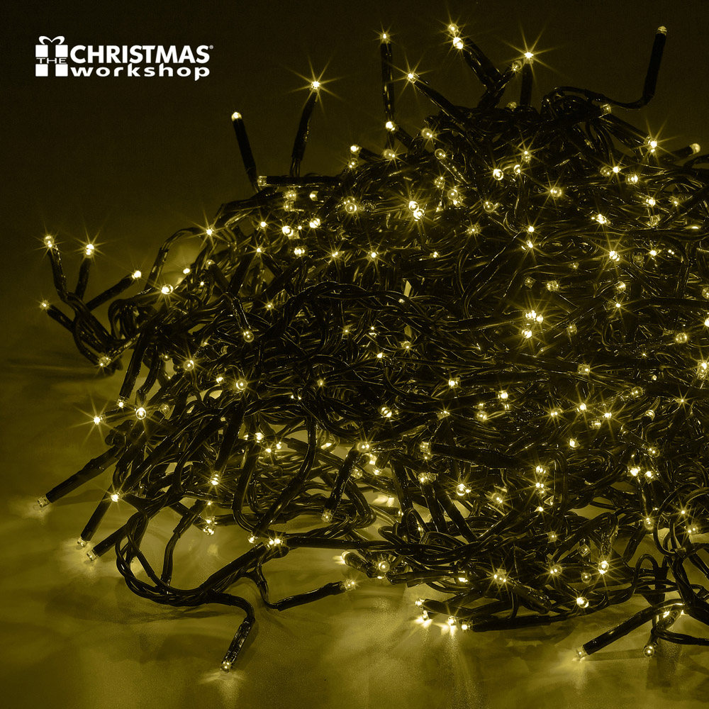 Get set for the ultimate holiday glow with The Christmas Workshop 720 Warm White LED Chaser Cluster Light. It features 720 LED light bulbs and serves as a perfect festive accessory for indoor and outdoor decorations. Stretching across 10.4 metres, with the first flashing bulb placed 10 metres from the mains box, this versatile chaser cluster light is perfect for covering large areas like Christmas trees, outdoor trees, and more. In addition, it is also a great option for special occasions like weddings, birthdays, bedrooms, or any other scenario where illumination is needed. With eight different light settings including combination, sequential, chaser flashing, twinkle flashing, waves, slow glow, slow fade and steady on, you can customise the ambience to suit any occasion. The light is mains operated, however, please note that while this light can be used outdoors, the mains unit must remain indoors and dry to ensure safety. With its versatile modes and warm white glow, this chaser light provides the perfect solution for all your festive decorating needs.