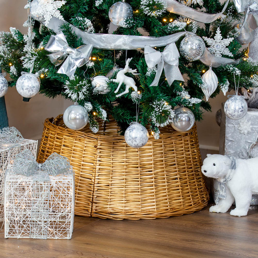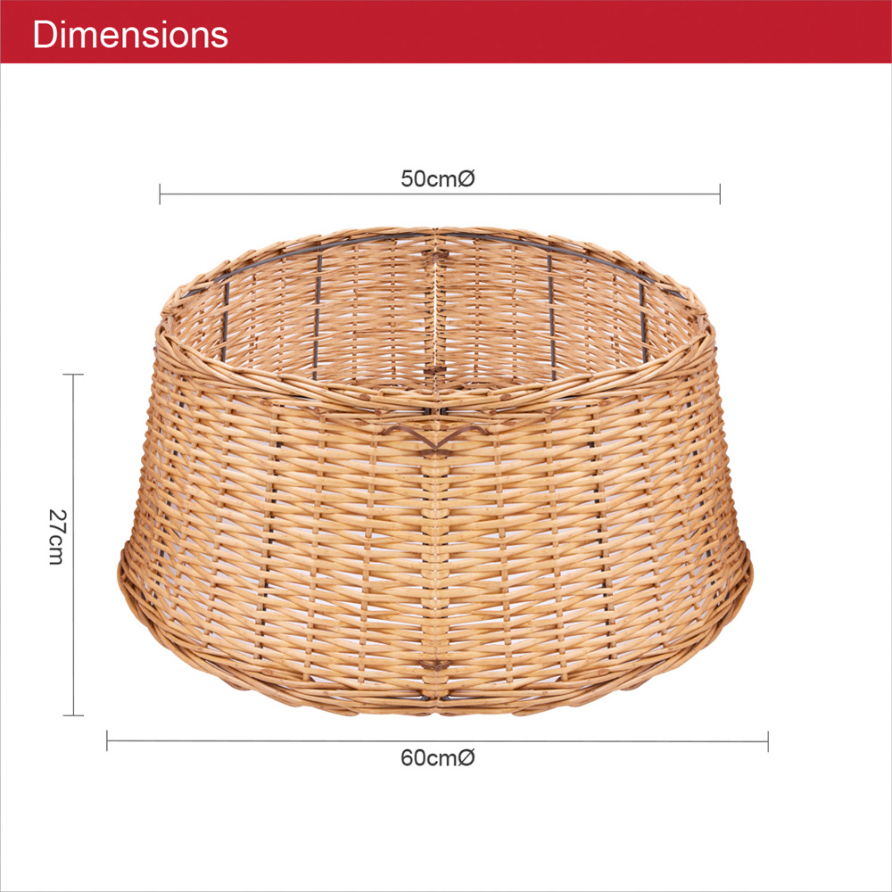 Enhance your Christmas tree with the The Christmas Workshop Foldable Willow Christmas Tree Skirt, designed from four separate parts for easy assembly and flat storage. The natural brown willow offers rustic charm, while the 60cm base, 50cm top diameter, and 27cm height perfectly conceal pots, wires, and fallen pine leaves.
