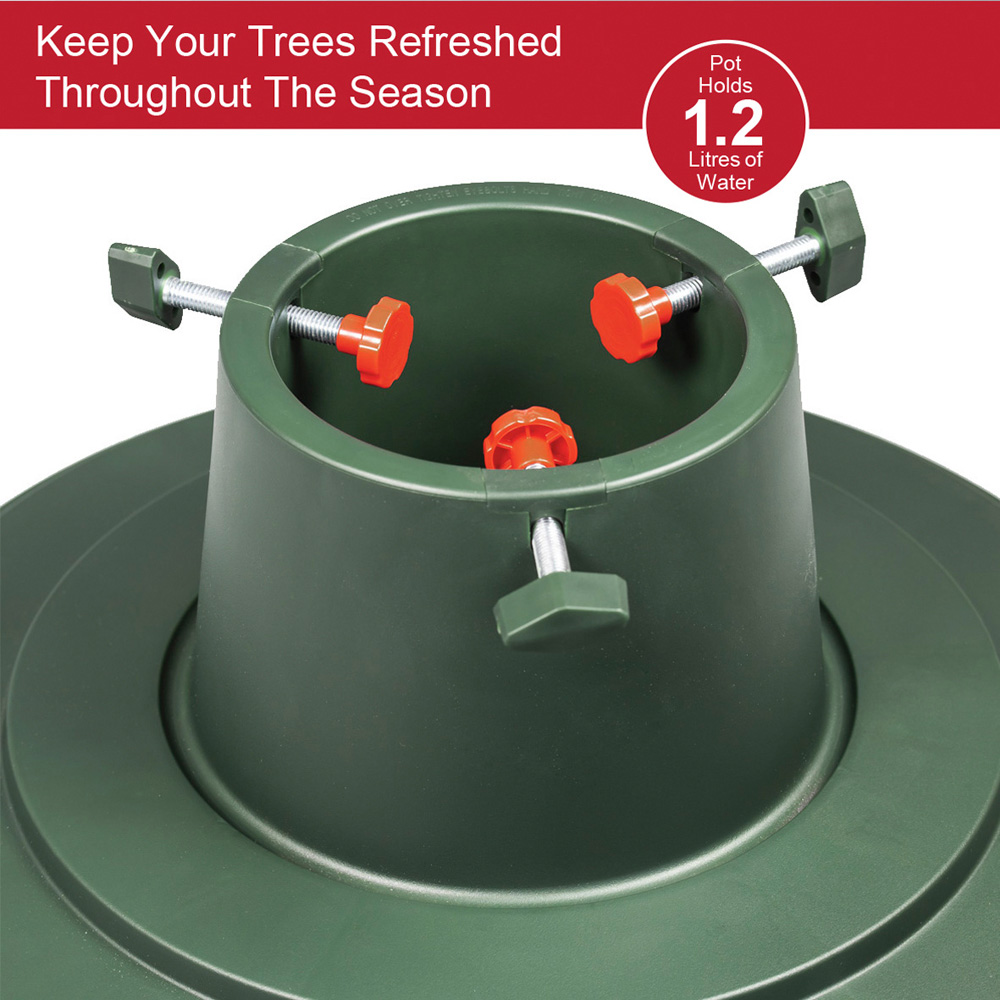 Secure your Christmas tree with this reliable The Christmas Workshop Green Christmas Tree Stand. Built to hold trees up to 1.5 metres tall and trunk diameters from 3 to 7cm, it ensures stability throughout the festive season. The stand also holds 1.2 litres of water, keeping your tree fresh.