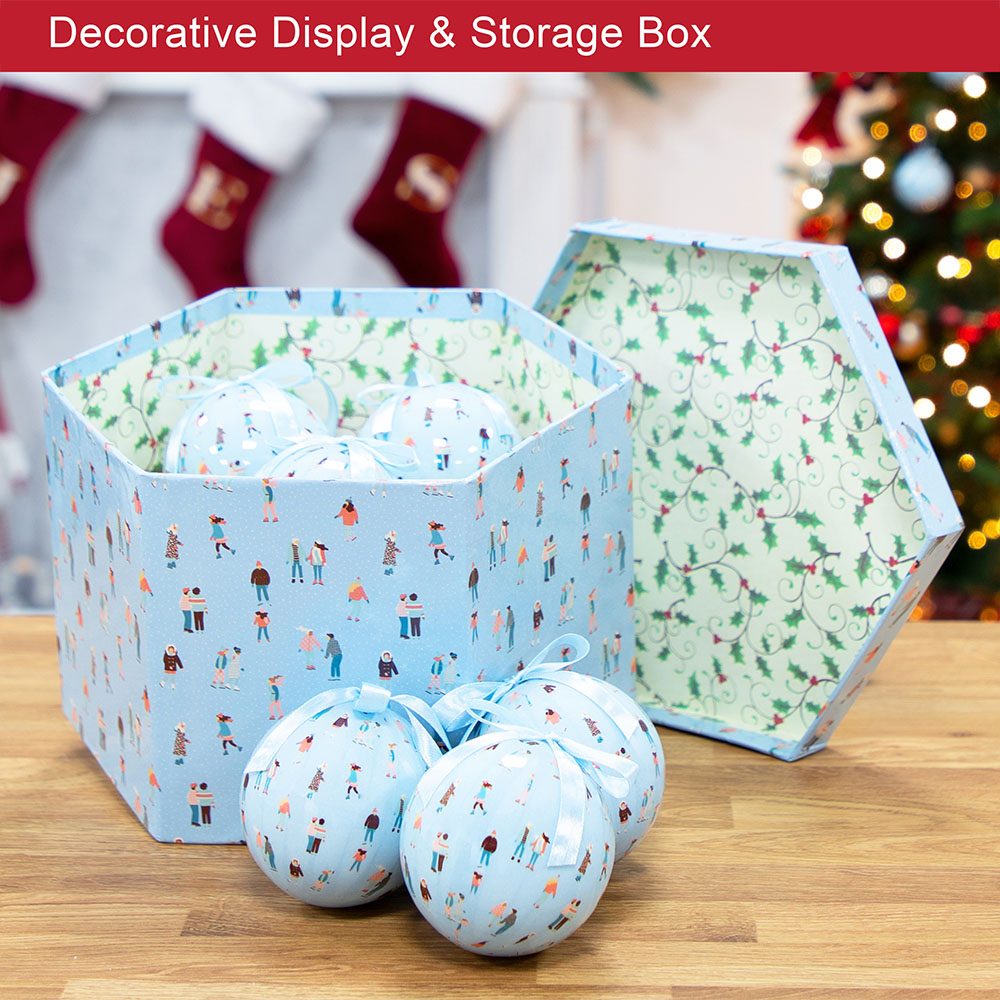 Bring winter magic to your Christmas tree with this delightful The Christmas Workshop 14 Piece Ice Blue People Skiing Bauble. Featuring a light blue background and graceful ice skating figures, these baubles are made from recycled polyfoam and come in a festive gift box that doubles as storage. Their lightweight design keeps branches intact.