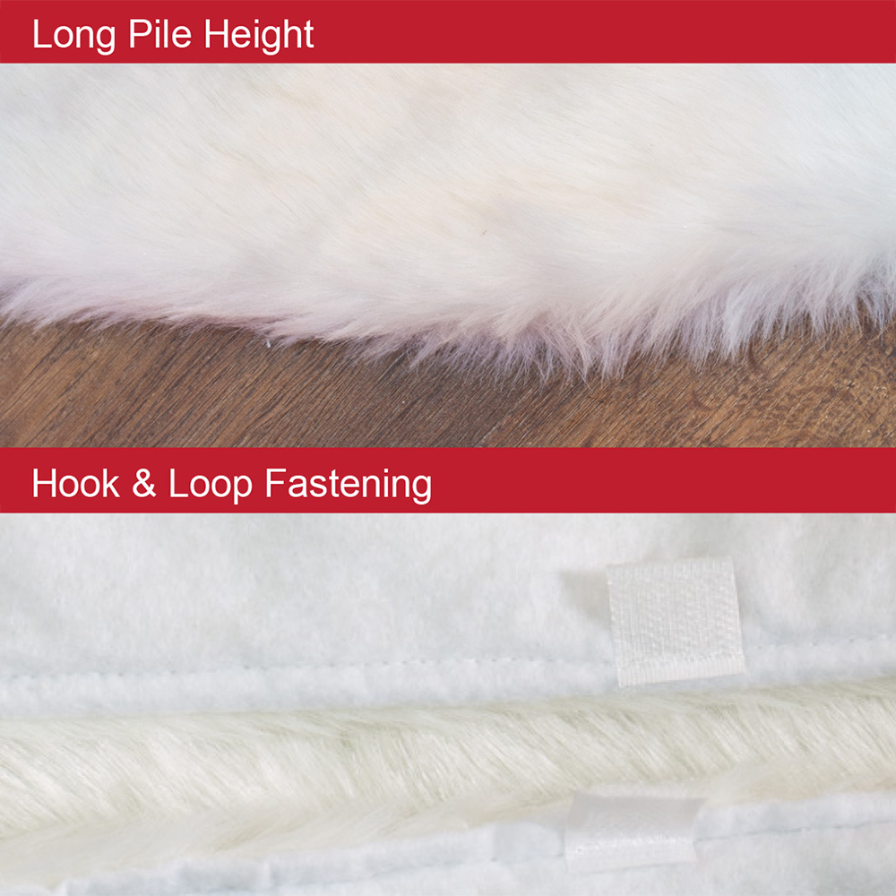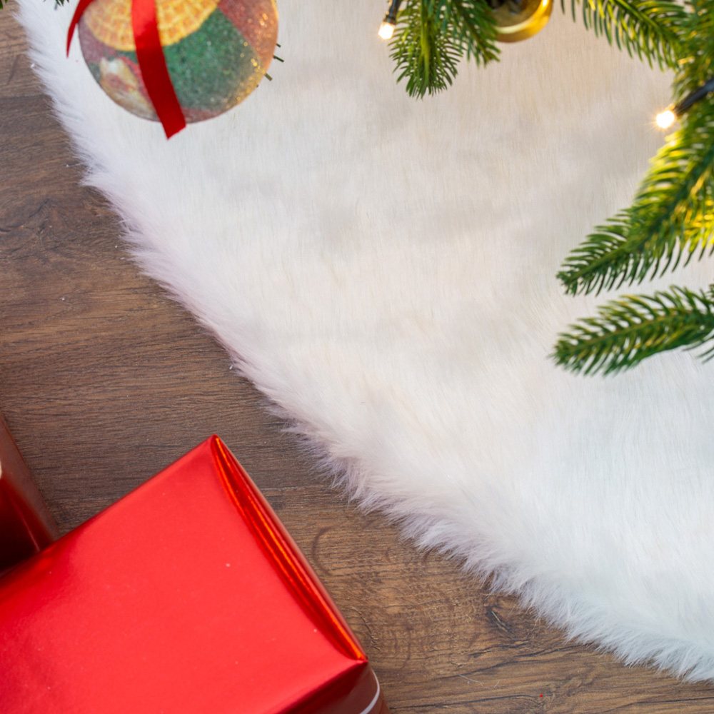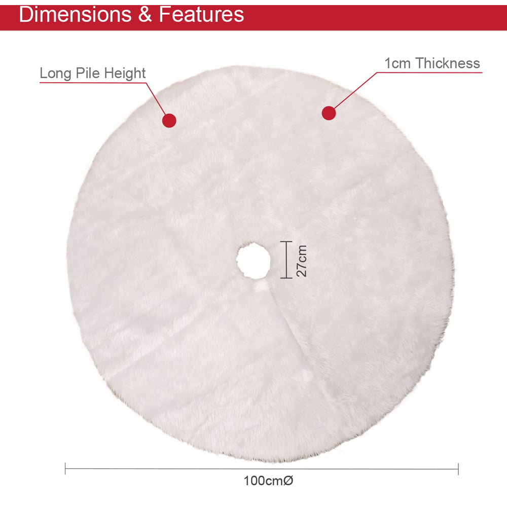 Elevate your Christmas tree decor with The Christmas Workshop White Faux Fur Tree Skirt. This exquisite plush white Christmas tree skirt instantly adds elegance to the base of your tree, bringing gravitas to your holiday decorations. This tree skirt features a long-length faux fur design for a comforting feel and is made of premium felt material, providing a comfortable place to display presents under your tree. The skirt measures 100cm in diameter and easily attaches into a perfect circle with its hook and loop fastening. After the holiday, you can fold the tree skirt flat and store it with your Christmas decorations for next year. The beautiful white colour gives the illusion of a snowy base for your tree, creating a sophisticated and enchanting look for your living room, conservatory, or office space.