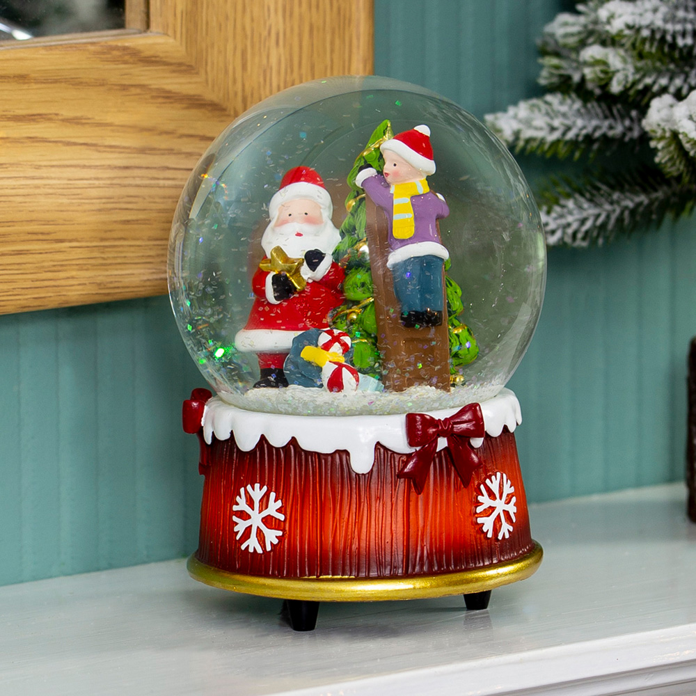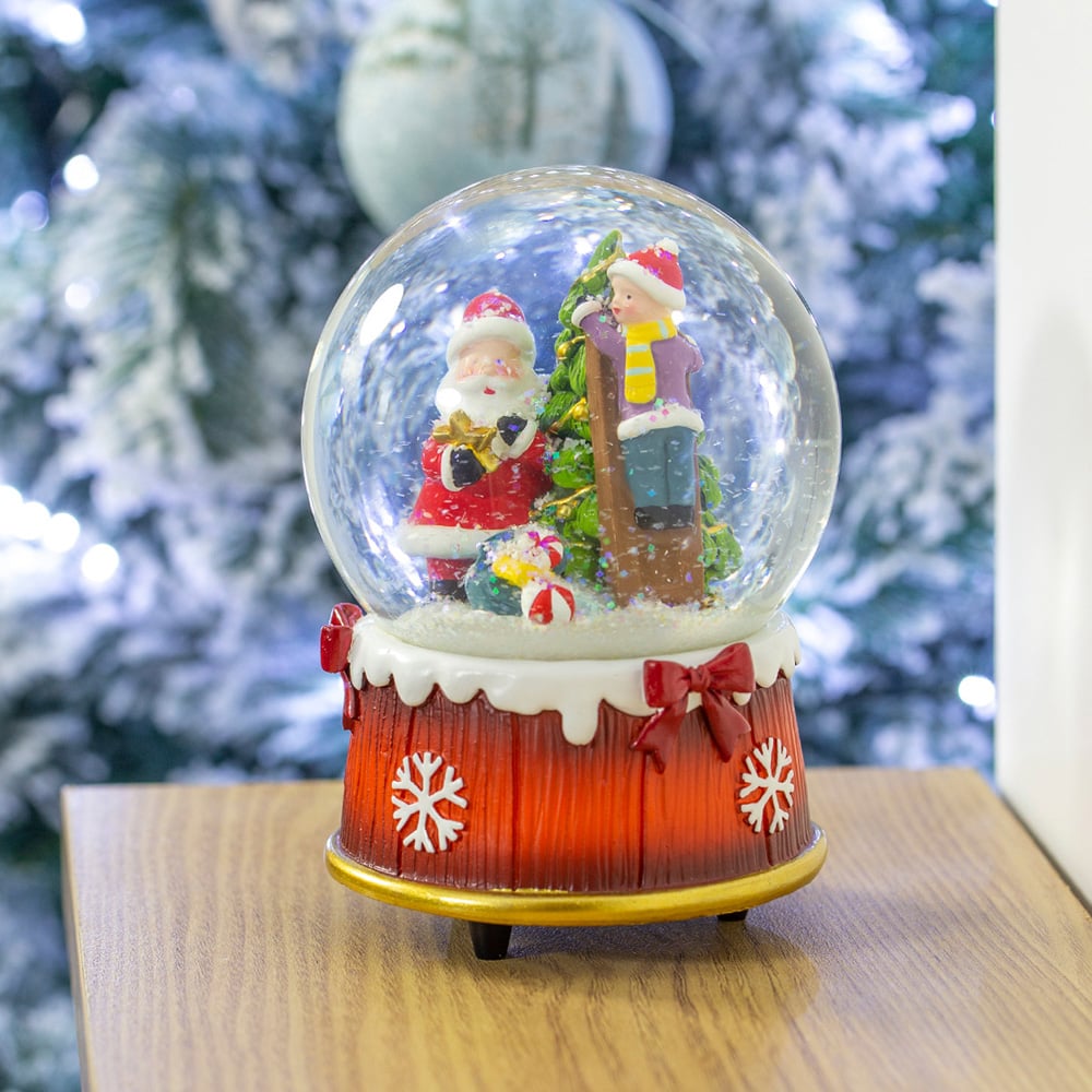 Add a soothing festive touch to your home decor with The Christmas Workshop Wind Up Musical Santa Snow Globe Decoration. This elegant Christmas decoration exudes a pleasant feeling to bring festive cheer to your home. This musical snow globe is the perfect Christmas decoration to sit on top of the fireplace or in the middle of the dining table. This snow globe features the festive tale of Santa helping a young child to decorate the Christmas tree. This fantastic Christmas decoration plays music to enhance the festive spirit. You can simply wind up the attached mechanism and listen closely as it plays the tune ‘Jingle Bells’. Please note: To prolong the life of your snow globe and prevent breakage, please do not overwind.