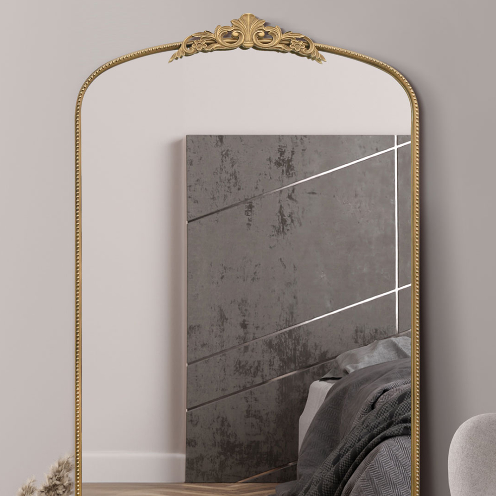 The Crown Gold Arched Metal Leaner Wall Mirror 174 x 96cm