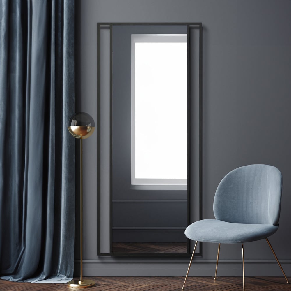The Fenestra Black Metal Leaner Wall Mirror 180 x 80cm