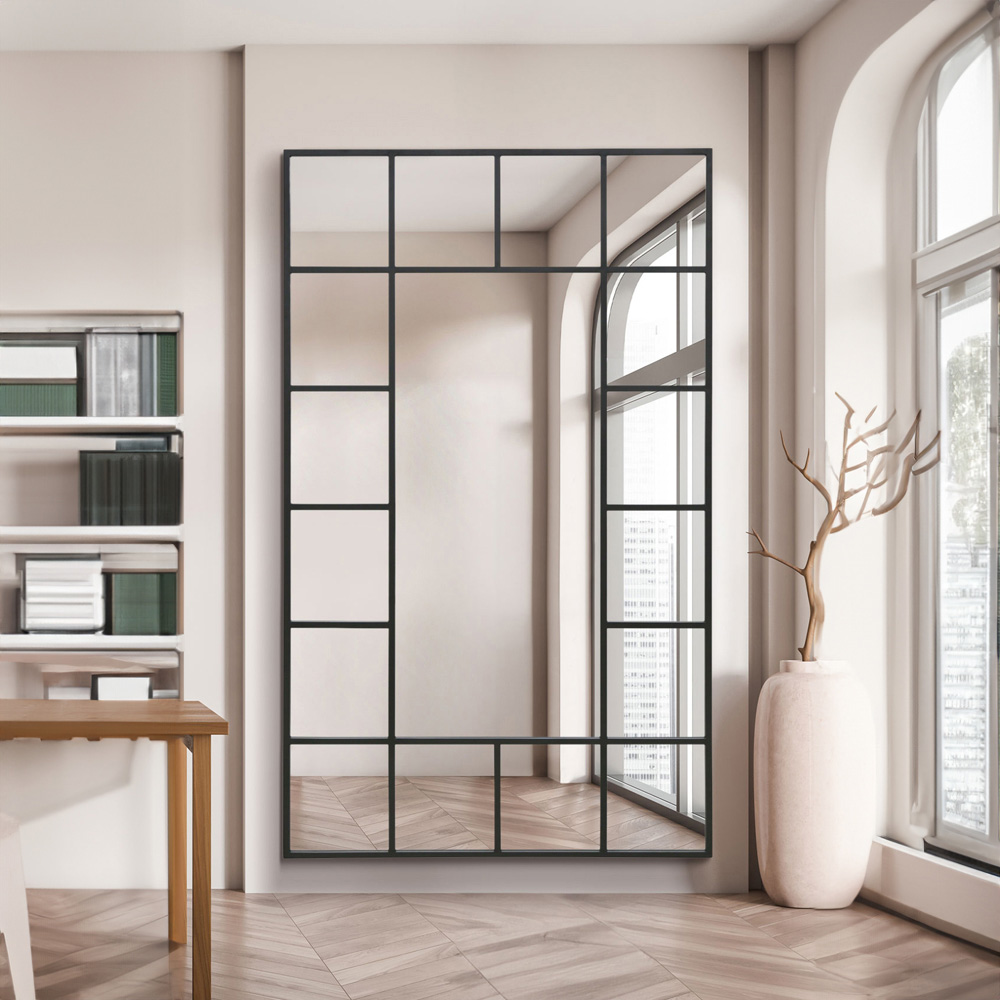 The Fenestra Black Window Metal Leaner Wall Mirror 200 x 120cm