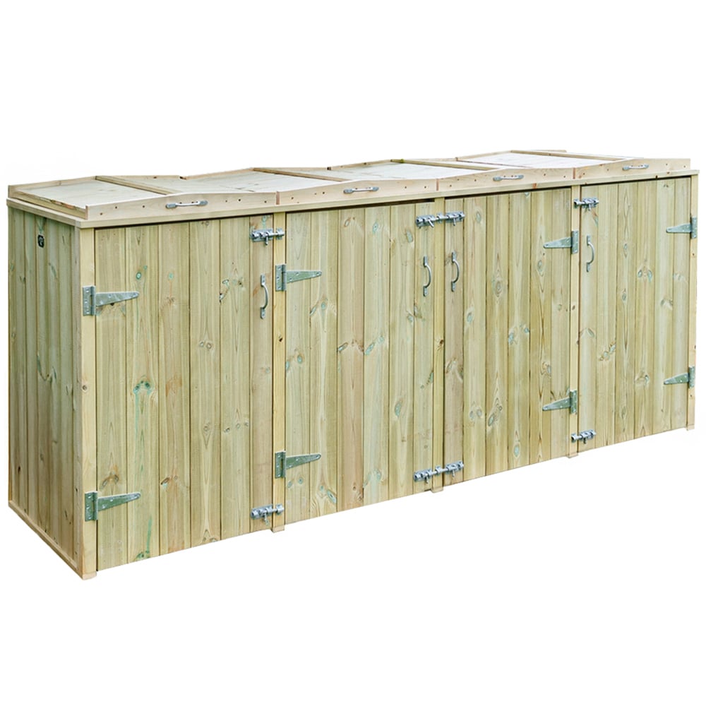 The Shireburn Wheelie Bin Store elegantly conceals your bin, adding a stylish touch to your outdoor space. Crafted by skilled artisans, this storage unit features an innovative auto-lift lid, making bin day a breeze with robust galvanised ironmongery giving the store a contemporary and truly modern feel. Designed to withstand all weather conditions, therefore, you can relax knowing your wheelie bins will survive come rain or shine. Holds four wheelie bins up to 240L size.