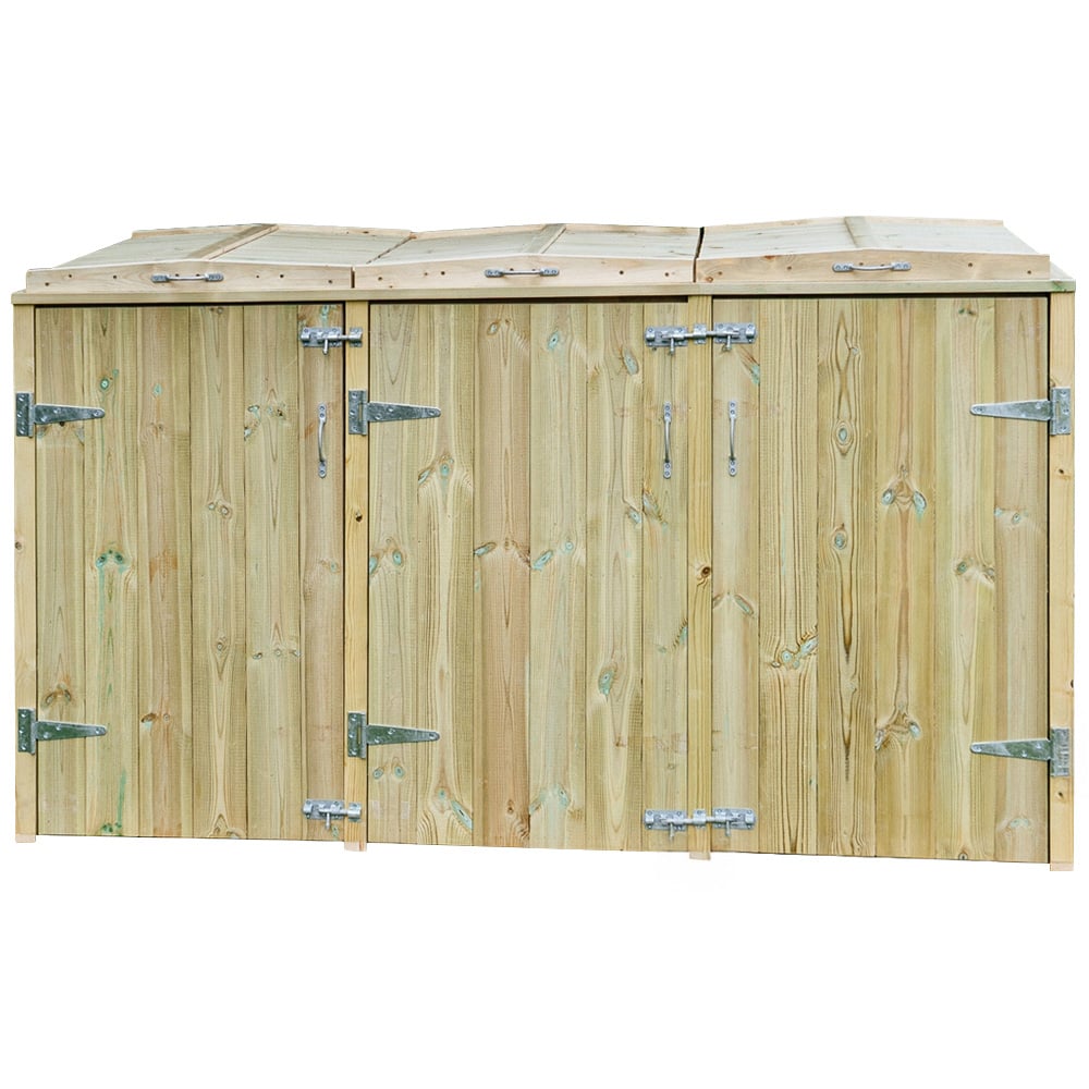 The Shireburn Wheelie Bin Store elegantly conceals your bin, adding a stylish touch to your outdoor space. Crafted by skilled artisans, this storage unit features an innovative auto-lift lid, making bin day a breeze with robust galvanised ironmongery giving the store a contemporary and truly modern feel. Designed to withstand all weather conditions, therefore, you can relax knowing your wheelie bins will survive come rain or shine. Holds three wheelie bins up to 360L size.