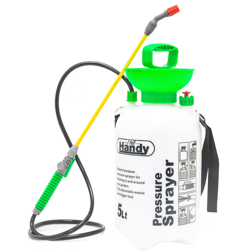 The Handy 5L Pump Sprayer has a powerful pump action facility for easy continual spraying, the pressure sprayer is manufactured from durable, robust materials. It is suitable for use with most garden and household chemicals, it is ideal for use around the garden, greenhouse and home. It is suitable for spraying a wide variety of liquids including water, herbicides, fertilisers, insecticides and cleaning detergents.