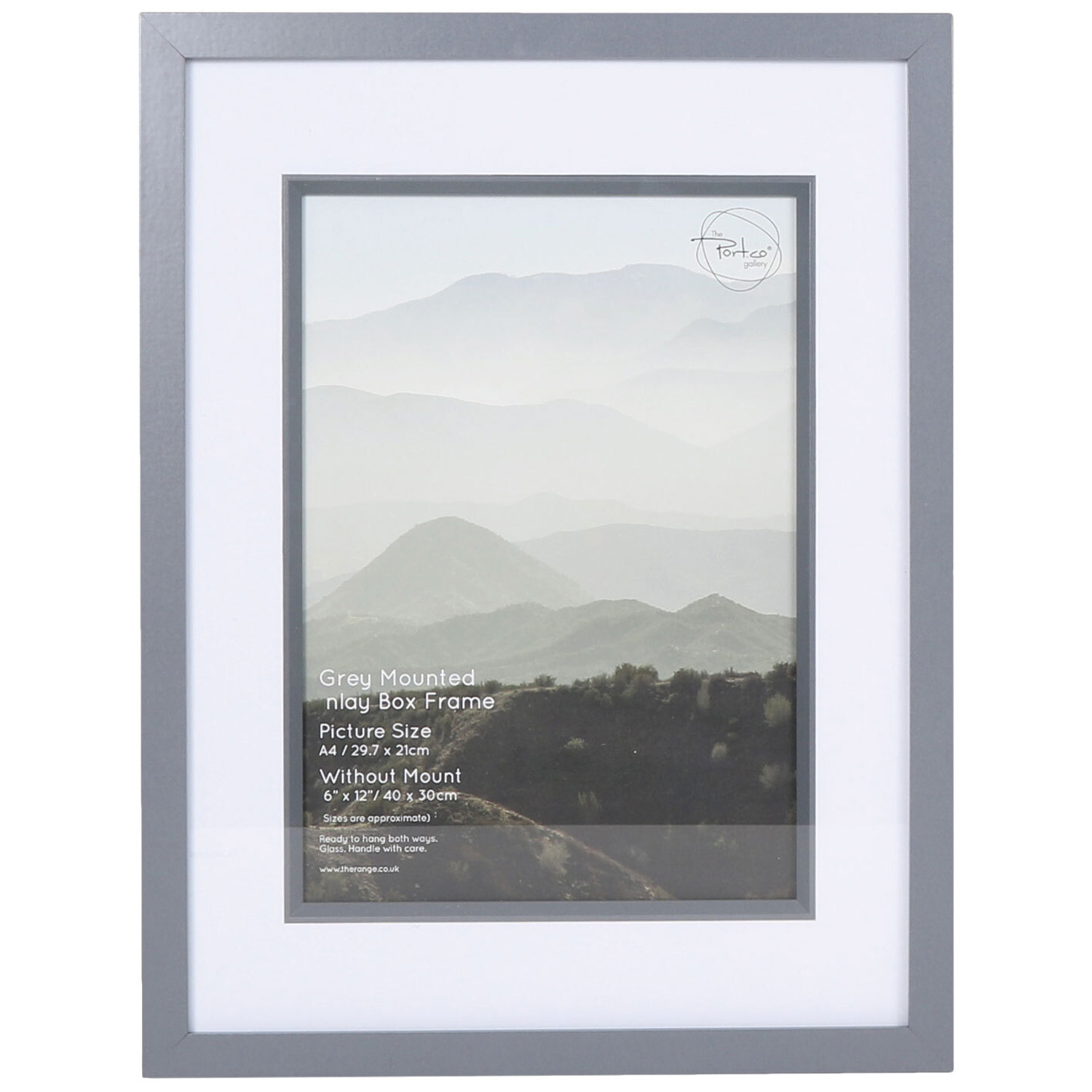 Make sure your favourite memories stand out with this sleek and stylish Grey Mounted Inlay Box Frame. Featuring a slate grey tone, this box frame adds dimension to your space and frames your favourite picture with ease, coordinating with a variety of home decor trends. Ideal for hanging on walls or standing on shelves, this is a truly versatile frame for any image.