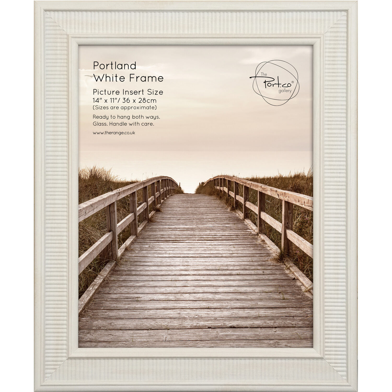 The Portland Frame is an elegant, simple frame suitable for any photo. The frame has a subtle textured finish to create modern depth and dimension in your space, highlighting your image in style without distracting from it. The classic white tone is easy to coordinate in your room, and the frame is perfect for hanging via hooks or standing on shelves and accent tables.