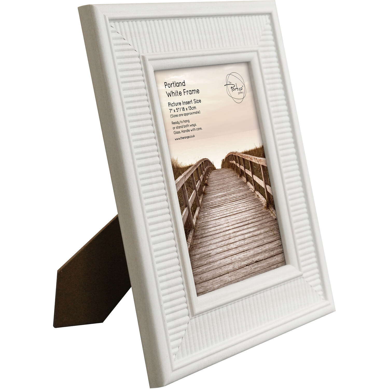 The Portland Frame is an elegant, simple frame suitable for any photo. The frame has a subtle textured finish to create modern depth and dimension in your space, highlighting your image in style without distracting from it. The classic white tone is easy to coordinate in your room, and the frame is perfect for hanging via hooks or standing on shelves and accent tables.
