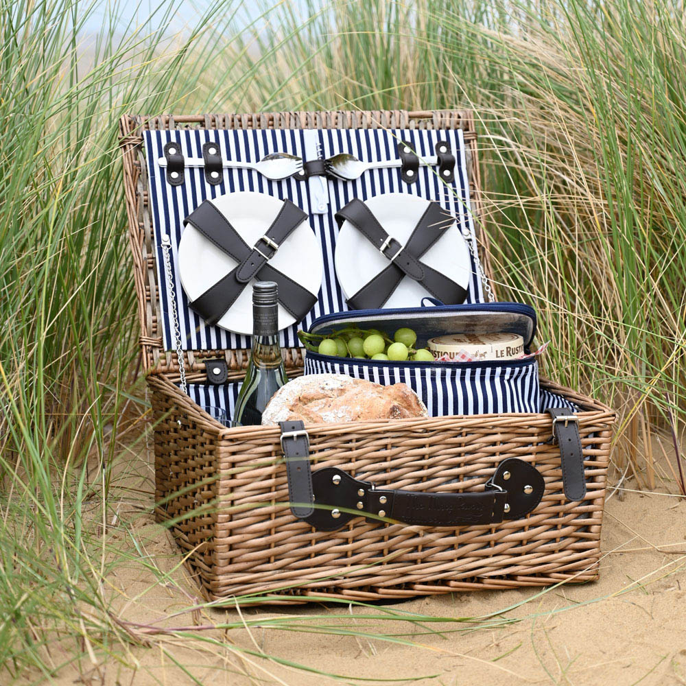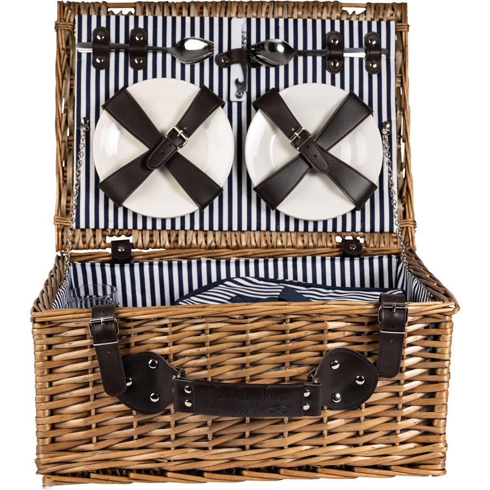This elegant luxury wicker basket will be the highlight of your perfect picnic. It includes a separate insulated 8L food bag, four ceramic plates, four acrylic wine glasses, a bottle opener, and four stainless steel sporks. Just add your favourite food and drinks. Care instructions: Wipe clean.