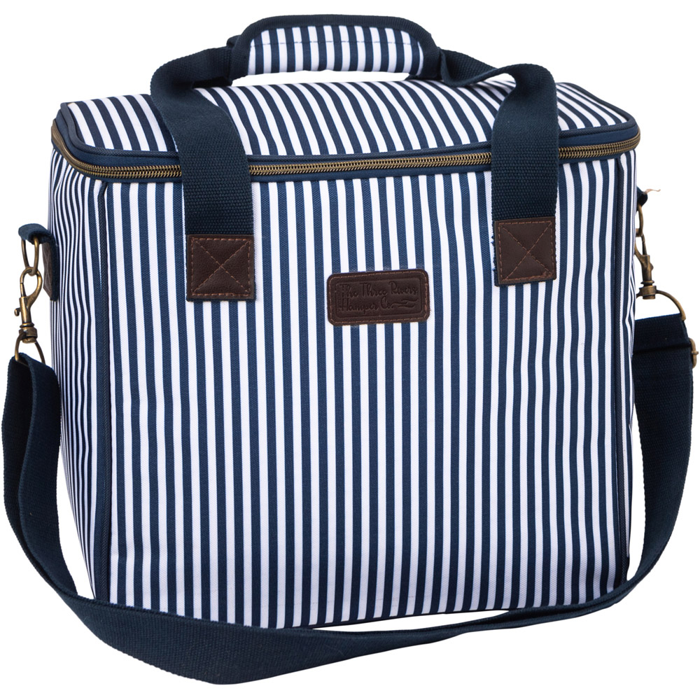 Introducing Three Rivers, a design classic of clean, fresh lines of navy and white stripes, the perfect look for that chill-out picnic. The large 20-litre insulated upright family cool bag is ideal for enjoying an al-fresco meal. The high-density insulated cool bag keeps contents chilled for up to four hours. The use of ice packs will increase the performance of this product. The polyester cool bag has a double zip for ease of access and an adjustable shoulder strap. Due to the extra height of this bag design, bottles can be stood upright. The white PEVA heat-sealed lining allows any spillage to be easily wiped clean.
