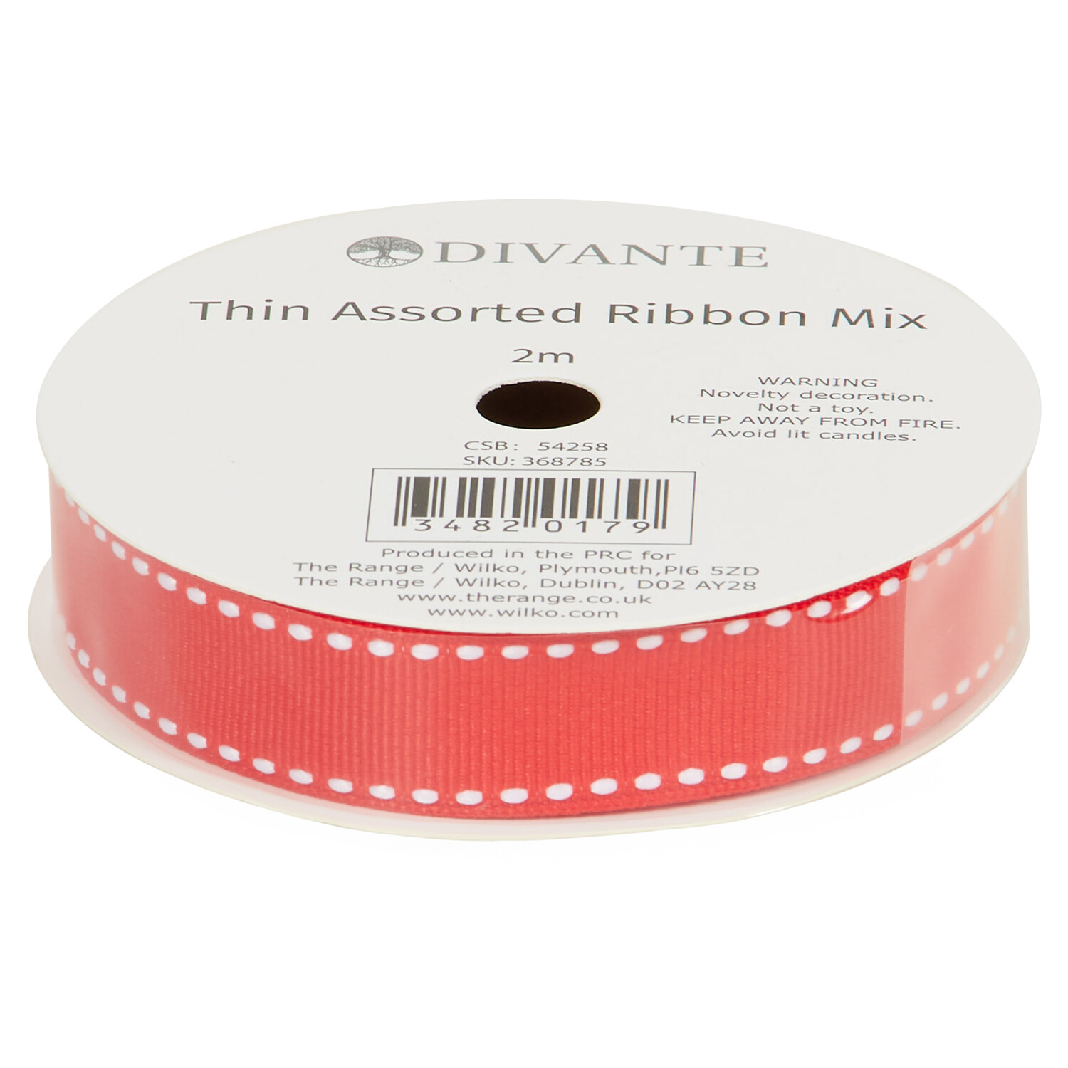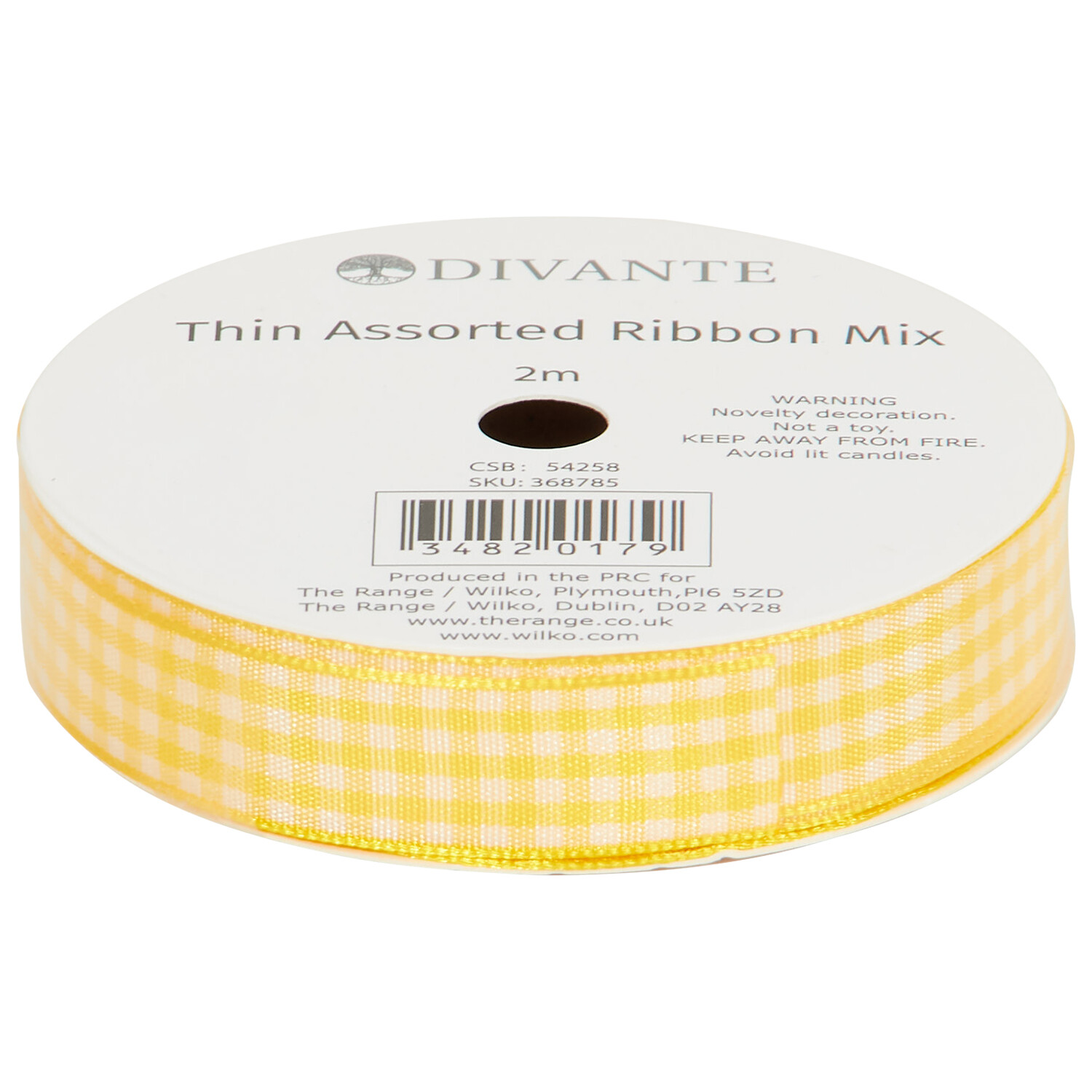 Give a touch of vibrant colours to your embellishments with this Thin Assorted Ribbon Mix. Available in an assortment of styles, it comes in stunning printed and solid styles to suit your needs. Suitable for various decorating tasks, it's great for making bows and other shapes as well as embellish gifts and ornaments.