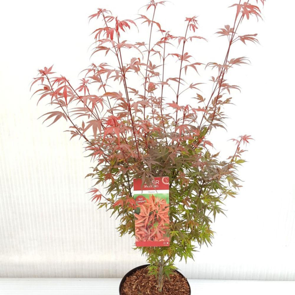Experience the captivating beauty of Acer palmatum Shaina, a standout Japanese Maple known for its stunning red foliage throughout the seasons. This compact variety, a mutation of the renowned Acer Bloodgood, boasts intensely coloured leaves that emerge in a brilliant crimson hue during spring, creating a striking visual impact. As the seasons progress, the foliage matures into a deep claret shade, offering a rich and elegant presence in your garden or landscape. Come autumn, Shaina transforms once more into a vivid display of bright crimson, adding warmth and charm to the surrounding environment. Perfectly suited for container gardening or smaller outdoor spaces, this hardy tree reaches a mature height of around 250cm with a spread of approximately 300cm. Its compact size makes it an excellent choice for those seeking a distinctive focal point without the space requirements of larger trees. Whether showcased as a solo specimen or incorporated into a mixed planting scheme, Acer palmatum Shaina promises year-round beauty and effortless elegance. How to Grow: Light: Plant in a location with filtered sunlight or partial shade to protect from harsh afternoon sun. Temperature: Thrives in temperate climates; protect from extreme heat or cold. Watering: Keep soil consistently moist, especially during hot weather; avoid waterlogging. Feeding: Fertilise in spring with a balanced slow-release fertiliser for optimal growth. Humidity: Moderate humidity levels are ideal; mist leaves during dry periods to maintain moisture. Images shown are for guidance only and show the expected results of plants upon maturity. Different growing conditions might vary the results. Image may be included for illustration of supply, but can vary due to seasonality changes (e.g., deciduous plants lose leaves in colder months). Decorative pots are not supplied.