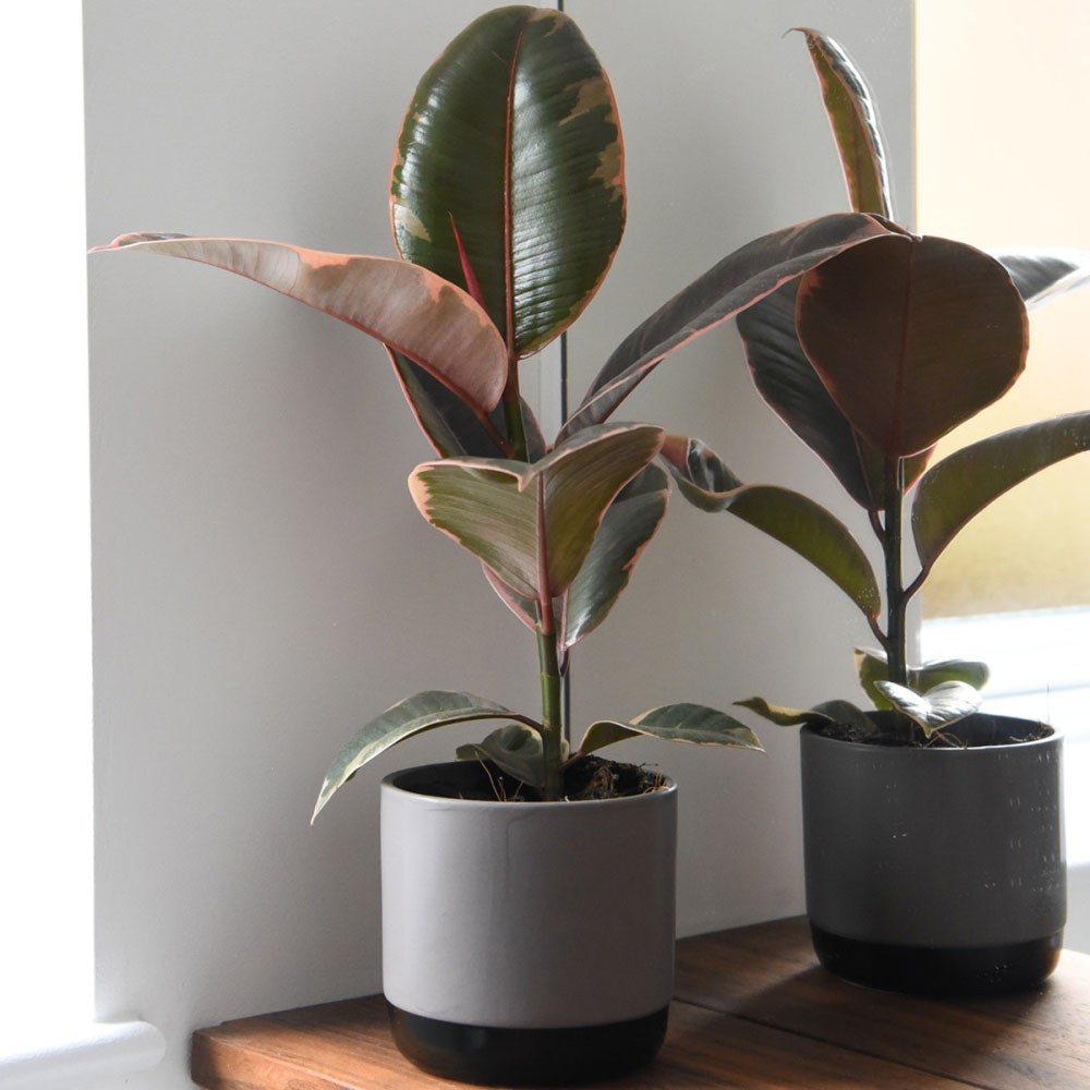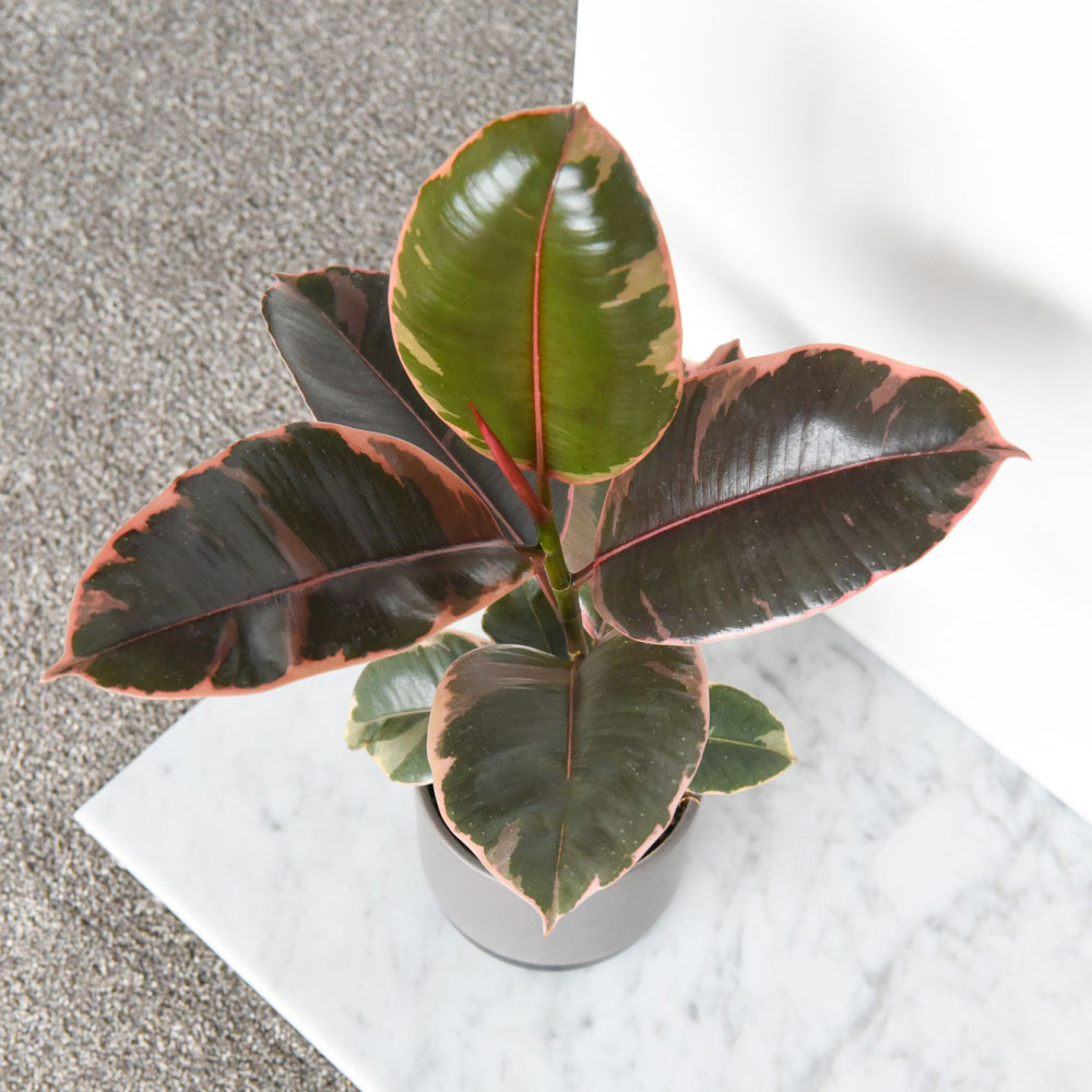 Colourful addition to any home, Rubber Plants aren’t just great looking, they are one of the best air-purifying houseplants, filtering out common toxins and keeping your home or office fresh. You’ll love eye-catching Ficus elastica 'Belize', with its tropical variegated foliage. Its large, glossy, deep green leaves are splashed with cream and pink around the edges for an amazing contrast! Rubber plants are a retro classic houseplant, ideal for creating your own indoor jungle. 'Belize' will make a unique statement plant for any room, where it will be admired by all who see it. Ficus elastica 'Belize' will thrive in a bright spot out of direct sunlight. Please note: Some houseplants are toxic or harmful to pets if ingested. If you believe your pet has consumed a poisonous plant then seek veterinary attention immediately. Take a sample of the plant with you. Plant height and spread is seasonal therefore we list by pot size rather than a defined plant size. The height and spread of the plant delivered will vary depending on the season, meaning arrival images are an indication only. Please note: This product cannot be delivered outside the United Kingdom. Product specifications: Position: Dappled Shade, Shade Height: Up to 300cm when fully established Spread: Up to 150cm when fully established Supplied as 1x Ficus elastica 'Belize' 12cm potted plant Images shown are for guidance only of the expected results from plants upon maturity. Different growing conditions might vary results. Image may be included for illustration of supply but can vary due to seasonality changes (e. g. deciduous plants lose leaves in colder months).