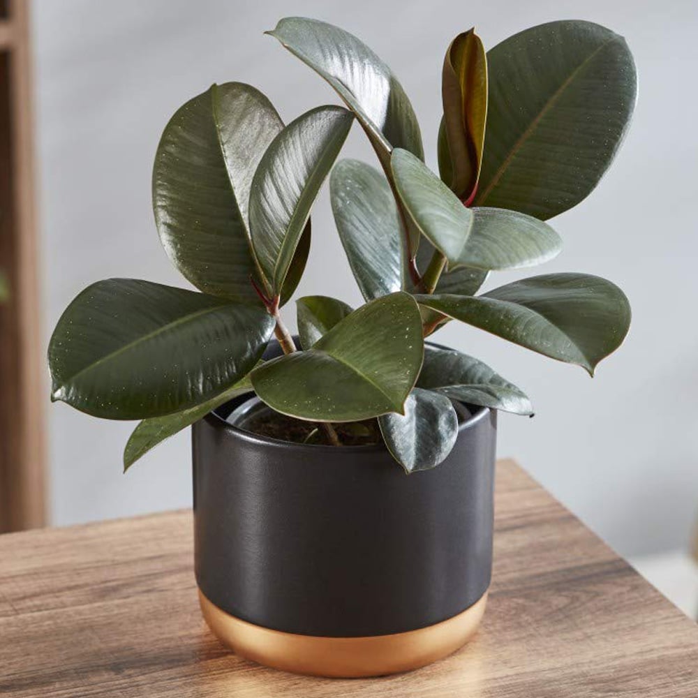 Possibly one of the most popular Indoor Plants, the Rubber Tree Plant is instantly identified with its large, dark green, glossy leaves; perfect for growing in the corner of a room where it will soon make an impact and enhance your living space. The Rubber Tree Plant is easy to grow and so it is a perfect House Plant for a beginner, it will happily grow in a brightly lit area but can also cope perfectly well in a more shaded part of the house; a perfect specimen plant for the indoors, wherever you grow it. Re-pot further as necessary and grow indoors in a warm, bright area. Keep your Rubber Tree Plant away from draughts and radiators too as drastic changes in temperature can cause the plant to drop its leaves. Use rainwater or bottled water where possible as most House Plants do not like the chemicals contained in tap water. Position: Sun or Part Sun Height: up to 300cm Spread: up to 150cm Supplied in a 12cm Nursery Pot Delivered with growing and care instructions Images shown are for guidance only of the expected results from plants upon maturity. Different growing condition might vary results. Image may be included for illustration of supply, but can vary due to seasonality changes (e.g. deciduous plants lose leaves in colder months).