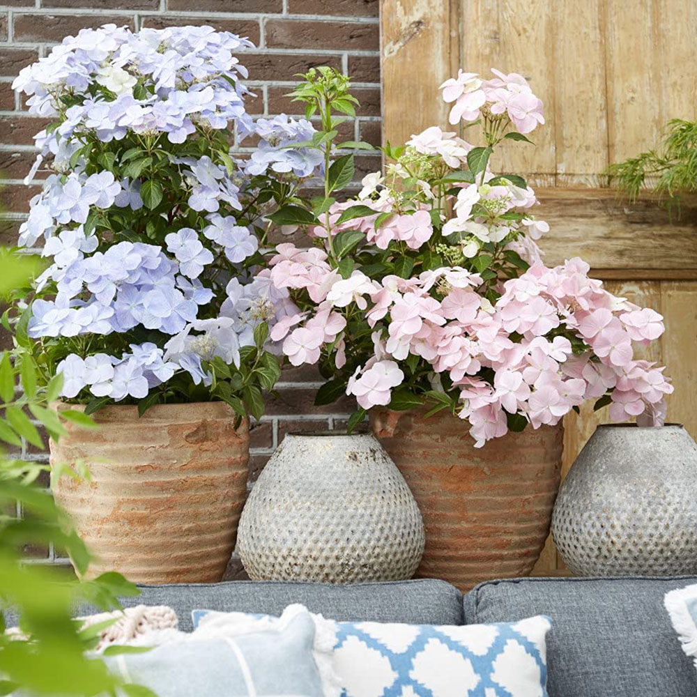Hydrangea French Bolero boasts six times more flowers than the average hydrangea! This new variety bears flowers along the length of each stem, which burst from strong lateral buds, creating the most free-flowering display you’ve ever seen! French Bolero is a modern hybrid of two species, H. scandens and H. macrophllya. and like its second parent, its blooms are large and change colour with the acidity of the soil. In alkaline soils, blooms are pink, whilst acid soil produces shades of purple and blue. Hydrangea French Bolero has a compact, spreading habit and is perfect for lightly shaded borders. It makes an elegant patio plant, too. Height and spread: 100cm. Hydrangeas prefer a position in shade or semi-shade, with shelter from cold, drying winds. Grow hydrangea plants in any rich, fertile, moist soil. Improve the soil prior to planting by adding plenty of well-rotted manure or garden compost, ensuring that it is mixed in thoroughly and deeply. Alternatively, plant Hydrangea macrophylla in patio containers in ericaceous compost. Product specifications: Position: Sun, Semi Shade or Dappled Shade. Height: Up to 100cm when fully established. Spread: Up to 100cm when fully established. Flowering period – June to September. Images shown are for guidance only of the expected results from plants upon maturity. Different growing conditions might vary the results. Image may be included for illustration of supply, but can vary due to seasonality changes (e.g. deciduous plants lose leaves in colder months).