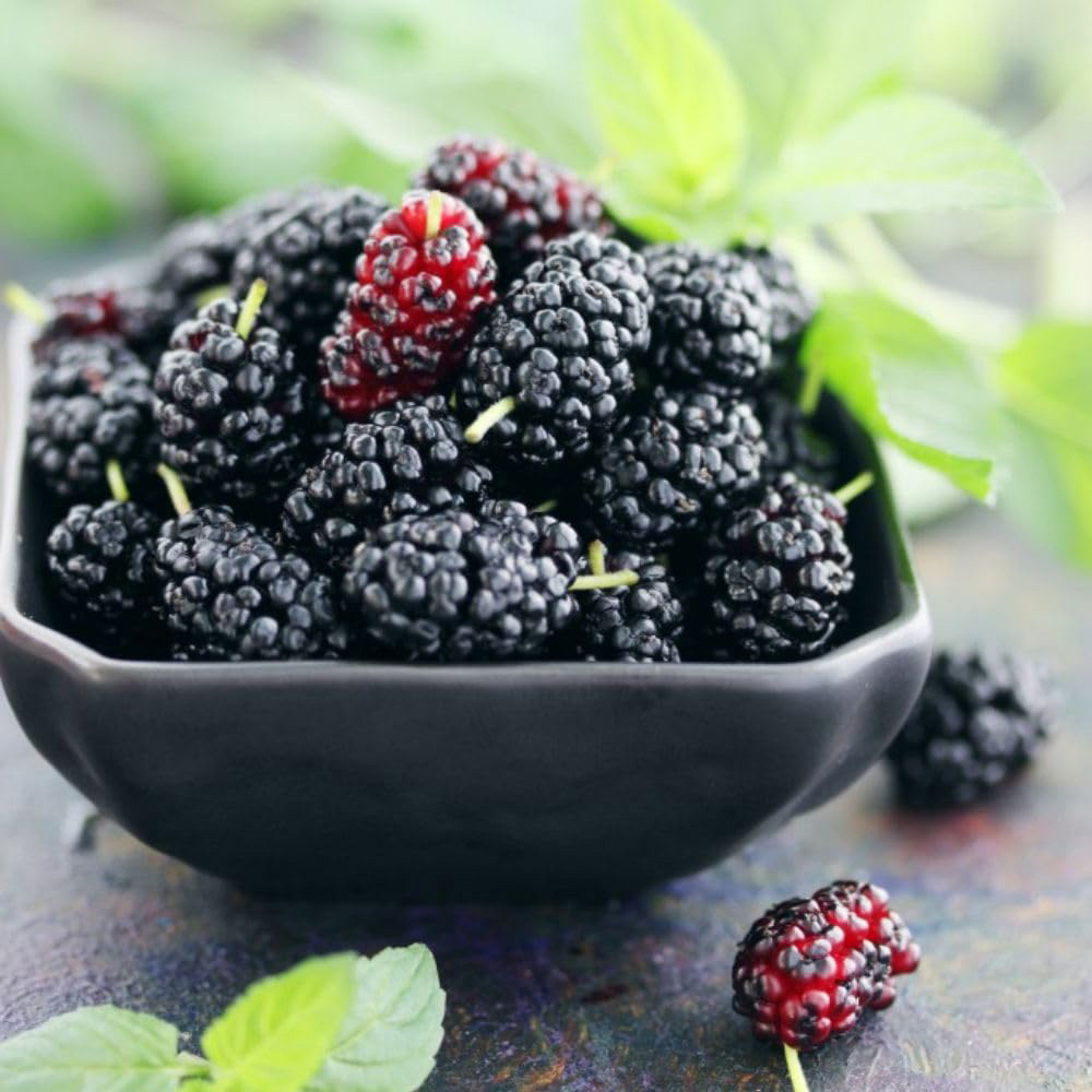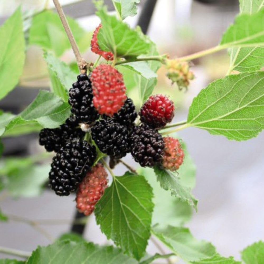 Experience the magic of the RHS Chelsea Flower Show Plant of the Year 2017 winner with Mulberry 'Charlotte Russe' (Mojo Berry). This exceptional dwarf Mulberry defies convention by thriving in compact spaces while offering bountiful harvests of delicious, juicy Mulberries. Unlike traditional Mulberries that can grow large and unwieldy, 'Charlotte Russe' remains compact with its neat stems, making it an excellent choice for kitchen gardens or patio containers. What sets 'Charlotte Russe' apart is its unique ability to fruit on both old and new wood, ensuring a continuous supply of fresh Mulberries over several months. How to Grow Instructions: Light: Plant in a spot that receives full sun for optimum fruit production Temperature: Hardy in various climates; protect from frost during winter Watering: Keep the soil consistently moist but not waterlogged Feeding: Apply a balanced fertilizer during the growing season to promote healthy growth Humidity: Mulberries prefer moderate humidity levels; ensure good air circulation around the plant Included Varieties: Morus nigra (Black Mulberry, Common Mulberry): A hardy variety known for its rich, sweet-tasting fruits and adaptability to diverse growing conditions Images shown are for guidance only and depict the expected results of plants upon maturity. Different growing conditions might vary results. Images may be included for illustration of supply but can vary due to seasonal changes . Decorative pots are not supplied.