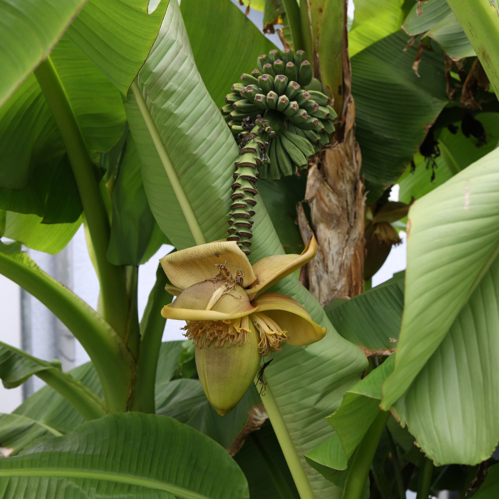 The Musa Basjoo Japanese Banana is a delicate perennial palm with large paddle-shaped leaves, arching away from the main trunk, which produces masses of yellow flower spikes bearing large brown bracts. As the name implies, the plant produces mini green banana fruits, although not edible, they are an attractive and interesting feature which is bound to create a lot of attention in your garden. Musa Basjoo likes to be planted outdoors in frost-free conditions, in moist, well-drained soil, in direct sun or partial shade. To get the best out of your plant, make sure the rootstock is planted deep below ground, so it is well protected. Ideally, grow under glass or a polytunnel in loam-based compost. Product Specifications: