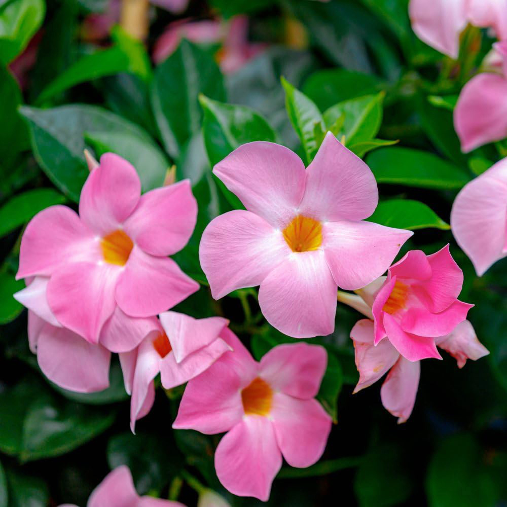 Transform your outdoor space with the vibrant beauty of Mandevilla sanderi Bloom Bells Pink. This stunning evergreen climber boasts an abundance of sumptuous pink, trumpet-shaped blooms that pop against its glossy, dark foliage. Whether winding around an obelisk or gracing your conservatory, this tropical plant brings an exotic touch to any setting. Mandevilla Bloom Bells Pink is perfectly suited for container gardening, making it a delightful addition to your patio or balcony during the warmer months. Its compact size makes it manageable for any space, while its striking appearance ensures it stands out as a focal point wherever it's placed. Enjoy a continuous display of colour and greenery with this easy-to-care-for plant. How to Grow Mandevilla sanderi Bloom Bells Pink: Light: Provide bright, indirect sunlight or partial shade. Temperature: Keep in a warm environment, ideally between 60-80°F (15-27°C). Watering: Water thoroughly when the top inch of soil feels dry, allowing excess water to drain. Feeding: Apply a balanced liquid fertiliser every 2-4 weeks during the growing season. Humidity: Mist occasionally, especially in dry indoor environments. Images shown are for guidance only and show the expected results of plants upon maturity. Different growing conditions might vary the results. Image may be included for illustration of supply, but can vary due to seasonality changes (e.g. deciduous plants lose leaves in colder months). Decorative pots are not supplied. Enjoy the beauty of Mandevilla sanderi Bloom Bells Pink in your home or garden and create a stunning focal point with this captivating evergreen climber.