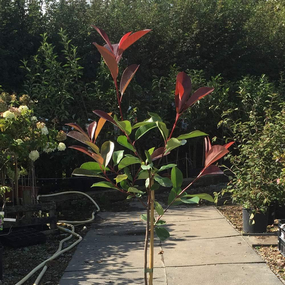 This attractive and popular evergreen shrub has been expertly trained into a standard (lollipop) shape to a provide striking architectural and formal effect. Standard Photinia ‘Red Robin’ is compact and neat in shape and very low-maintenance, simply requiring a quick clip once a year to keep its neat rounded shape. This well-known and award-winning variety is reliable and very unfussy, thriving in sun or partial shade and virtually any soil type. The glossy evergreen foliage provides year-round interest, but it looks its best during spring and early summer when the young leaves emerge bright red. This standard tree can be grown in any garden, large or small. Display it in a large patio container, or two either side of a doorway or steps for symmetry. You can also grow it in border among flowering plant to add structural contrast. Grow Photinia plants in a sunny or semi shaded position, in any moderately fertile, moist, well-drained soil. Prior to planting, incorporate plenty of well-rotted manure or garden compost into the soil. Plant Photinia shrubs at the same depth as they were planted in their pots. Backfill the planting hole and water well to settle the soil. If planting in containers, use a soil-based compost such as John Innes No3. Water regularly throughout the growing season until young plants are fully established. In spring, apply a mulch of well-rotted manure or garden compost to the base of the plant. Once established, Photinia requires only occasional attention. Position: Full Sun/Partial Shade Height: Up to 1m when fully established Spread: Up to 50cm when fully established Supplied as 2 x Photinia ‘Red Robin’ Standard Plant (up to 14cm tall) in 3L Pots. Images shown are for guidance only of the expected results from plants upon maturity. Different growing conditions might vary results. Image may be included for illustration of supply but can vary due to seasonality changes.