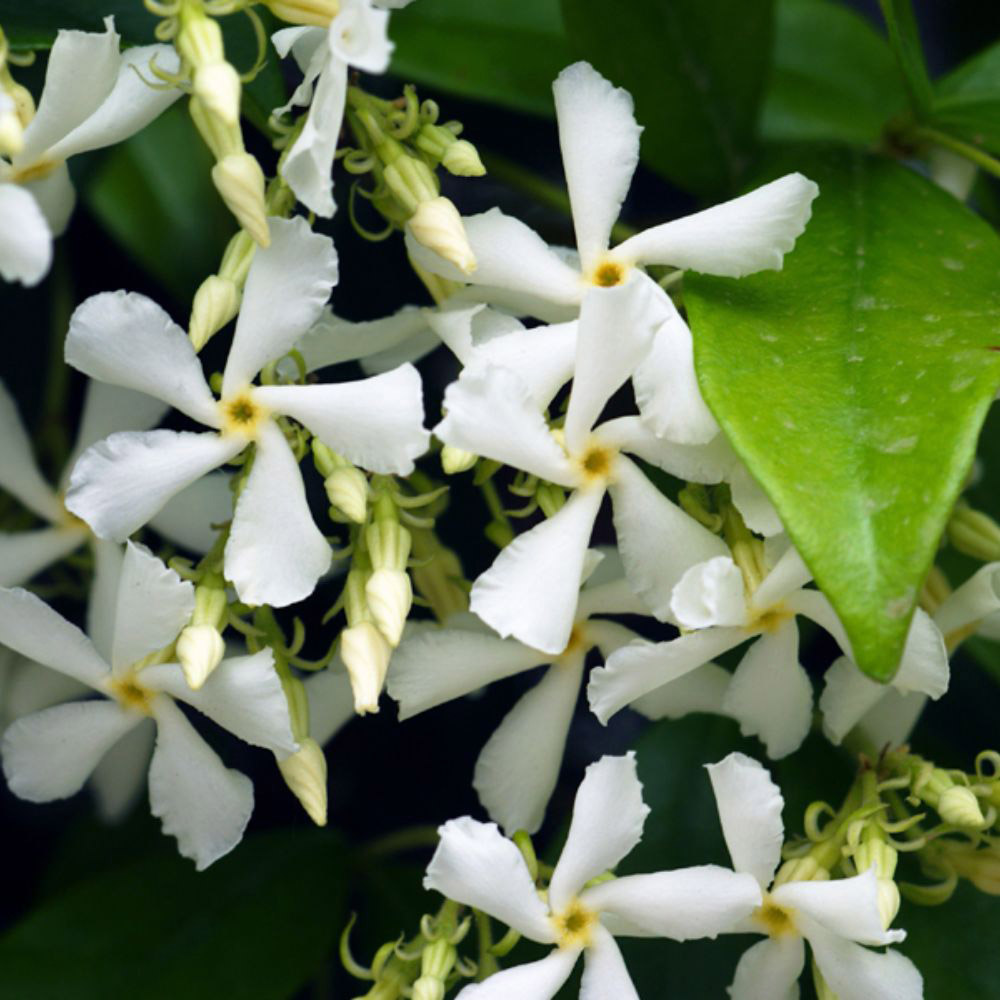 Trachelospermum jasminoides, commonly known as Star Jasmine, is not actually part of the Jasmine family, although it does have a similar look. This vigorous evergreen climber is the ideal plant for providing a year-round screen of attractive glossy leaves on woody, twining stems. From midsummer onwards, it bursts into bloom with clusters of starlike flowers which have a delicate, sweet fragrance perfect for growing next to a seating area where the perfume can be appreciated on warm summer evenings. This easy-to-grow climber has a relatively unfussy nature, thriving in most conditions and putting on a wonderful, effortless display. During autumn, you’ll be rewarded with another burst of colour from the foliage, which turns to a deep red and bronze. 2-litre potted star jasmine plants can be planted straight outside during mild conditions. Plant Trachelospermum jasminoides in fertile, well-drained soil in sun or semi-shade. In particularly cold areas, Trachelospermum jasminoides is best grown in patio containers filled with loam-based compost. Provide the twining stems with appropriate support such as a trellis, wires, pergola or arch. Feed and water regularly throughout the growing season. After flowering, reduce the stems to restrict them to the available space. Caution: The milky sap of Trachelospermum is an irritant to skin and eyes Caution: irritant to skin and eyes. Position: Full Sun/Partial Shade Height: Up to 3m when fully established Spread: Up to 3m when fully established Supplied as 2 x Trachelospermum jasminoides Star Jasmine plants in 9cm Pots. Images shown are for guidance only of the expected results from plants upon maturity. Different growing conditions might vary results. Image may be included for illustration of supply but can vary due to seasonality changes e.g. deciduous plants lose leaves in colder months.