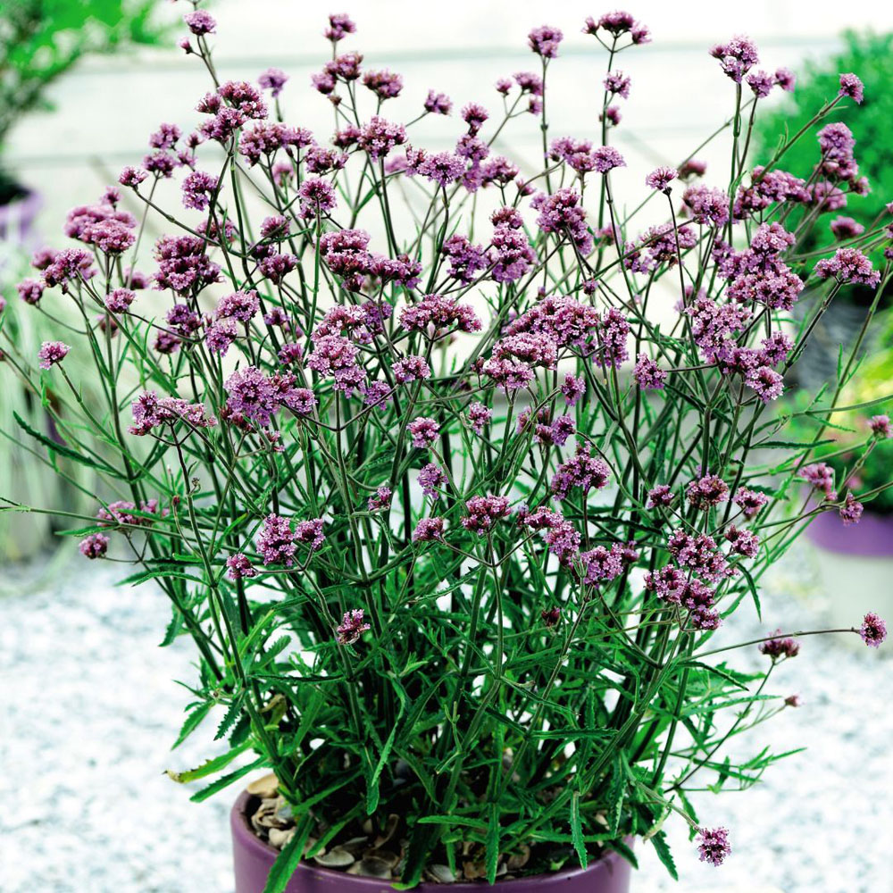 Verbena binaries ‘Lollipop’ is just like the traditional tall variety, showing off tight clusters of vivid purple flowers on elegant, slender stems throughout summer, only much shorter. Only reaching half the height of the original variety, it’s perfect for growing in pots to display on the patio, and just as good planted in close groups in the border where its airy habit will bring texture and softness to any planting scheme. If you enjoy the sight of butterflies fluttering around the garden, this fabulous, nectar-rich plant certainly comes up trumps, attracting all kinds of butterflies, bees and other pollinating insects. It’s incredibly easy to grow and also drought tolerant, which makes it all the more suitable for container growing. Verbena binaries ‘Lollipop’ will put on a stunning show with the very minimum of fuss, once established, only requiring occasional watering and without the need for staking. As this verbena is a fully hardy perennial, you can look forward to a repeat summer display year after year. Plant outdoors in a sheltered position in any well-drained soil in full sun, watering in thoroughly after planting. Feed and water plants regularly until they are fully established. Verbena flowers do not require deadheading. In autumn, apply a dry mulch of bark chips or straw to protect the crown of the plant throughout the winter months. Cut back the old stems when new shoots emerge at the base of the plant in spring. Position: Full Sun Height: Up to 60cm when fully established. Spread: Up to 60cm when fully established. Images shown are for guidance only of the expected results from plants upon maturity. Different growing conditions might vary the results. Image may be included for illustration of supply, but can vary due to seasonality changes (e.g. deciduous plants lose leaves in colder months).