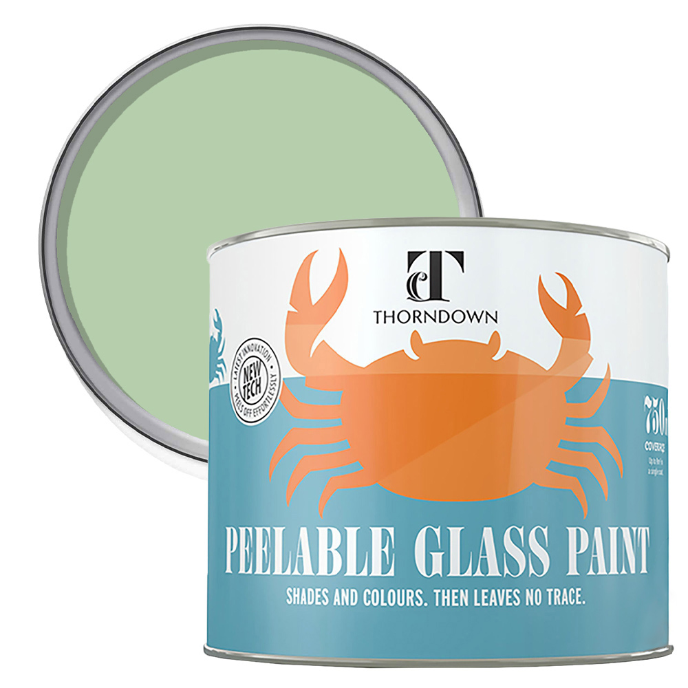 Get creative with Thorndown Cathedral Green Peelable Glass Paint. Cathedral Green is a bright and light green opaque glass paint. This water-based peelable glass paint is made from resin using 100% recycled plastics. The old coatings can be used for recycling. When painted on any shiny surface - it is perfect for shading or privacy that you can peel off to remove! This paint is perfect for temporary decorations at Christmas, Halloween and parties or as permanent paint for craft projects like tiles, mirrors, shower screens and more. Easy to shade or colour any glass or shiny surface – this paint allows you to be as creative as you like. It is non-toxic, virtually VOC-free (Volatile Organic Compounds 0.05%) and halogen free with a low carbon footprint. This ready-to-use paint covers 12 square meters per litre and can be used inside or outside - providing a durable, water-repellent coating. Along with glass - the paint can also be applied to polycarbonate and acrylic glazing. Whether you brush, roller, spray or mix colours, it is simple and fun with results you can be proud of. Quantity: 750ml.