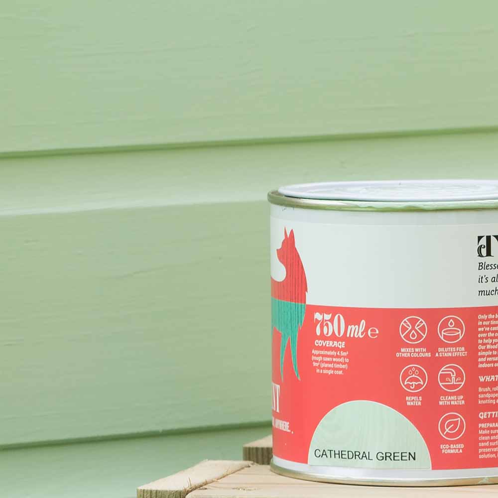 Restore your surroundings to an oasis of natural beauty with this Thorndown Cathedral Green Interior and Exterior Wood Paint. A fresh, pretty green stain, which got its name from the Cathedral Green near the historical West Front of Wells Cathedral. Transform and protect any timber surface with this environment-friendly paint, which can be used for the exterior as well as the interior. Also suitable to paint terracotta, metal, plastic, and PVC window frames. These paints contain a selection of the best exterior grade pigments that give a deep colour which lasts for years without UV fading in the sun. Mix the paint with Clear for a more transparent finish or with water for a wood stain effect, and for a water-repellent finish, when diluted with water, just add a couple of coats of UV Clear. The application of this water-based & odour-free paint is easy, whether you paint straight from the tin, mix colours, or dilute them. Gives a delicate satin finish, allowing the wood grain to be visible for its natural beauty. Quantity: 150ml