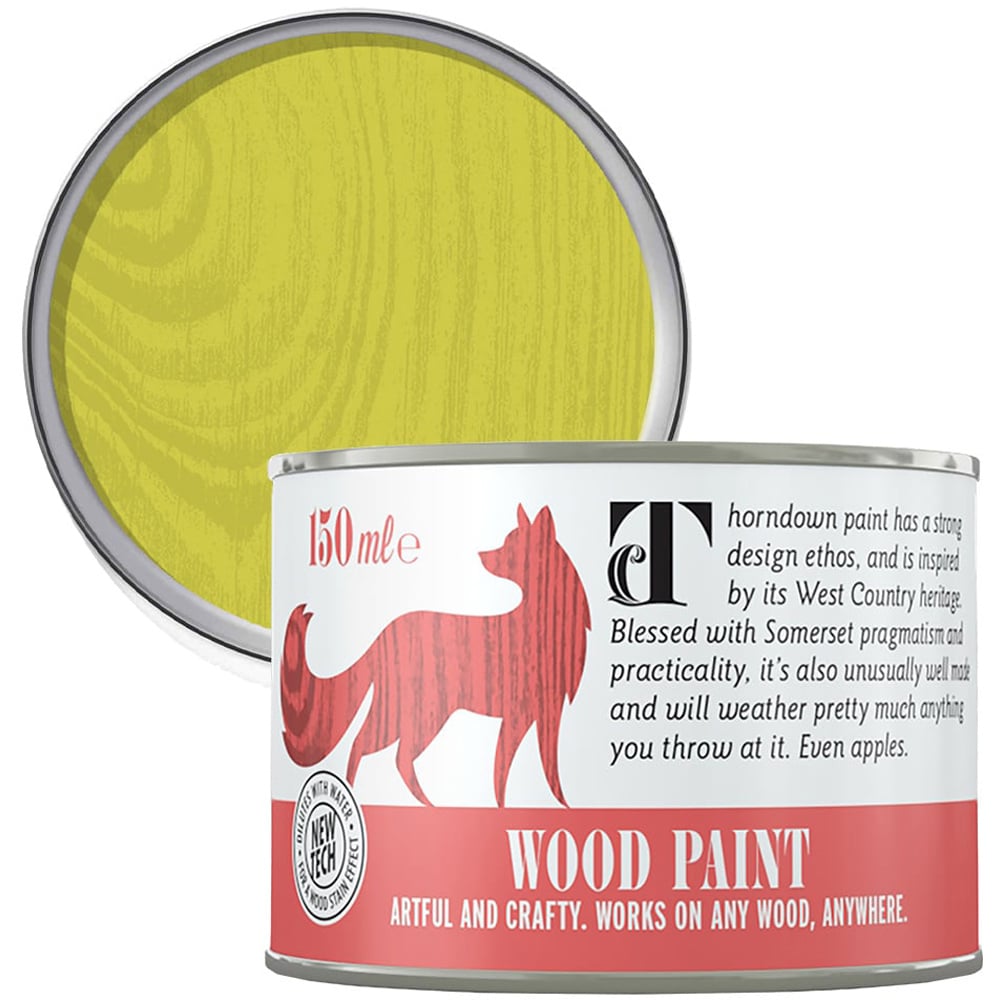 Get creative with Thorndown Gromwell Green Satin Interior and Exterior Wood Paint. This unique, environmentally friendly paint is a bright, acidic yellow-green inspired by the foliage of a rare herb found in Mendip woodland. Suitable for use on any type of timber surface, both internally and externally, this paint has a delicate satin finish that highlights the natural beauty of wood grain. These paints contain a selection of the best exterior grade colourants that give a deep colour which lasts for years without UV fading in the sun. Mix the paint with Clear for a more transparent finish or with water for a wood stain effect, and for a water-repellent finish, when diluted with water, just add a couple of coats of UV Clear. You can even use it on terracotta, metal, and plastic, including PVC window frames. The application of this water-based & odour-free paint is easy, whether used straight from the tin, mixed with other colours, or diluted for a wood stain effect, you'll love the finished results. Quantity: 150ml