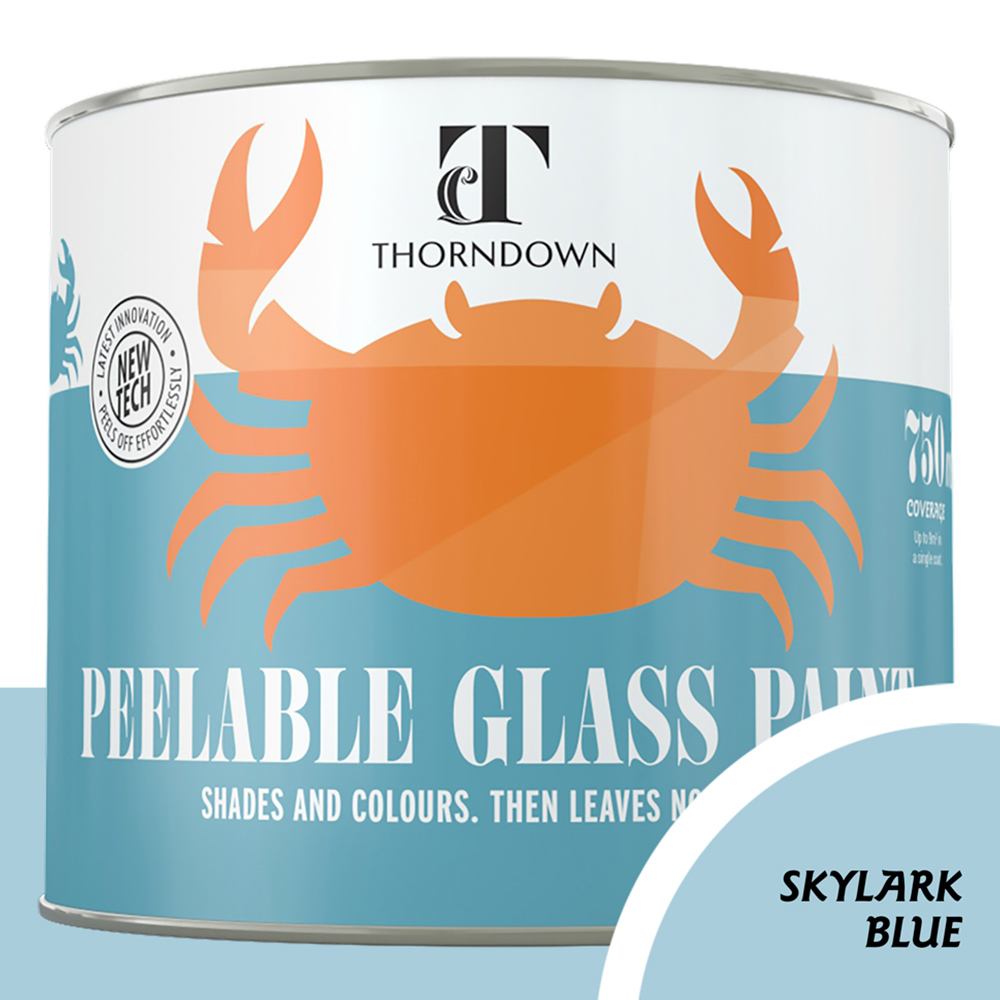 Transform your world with Thorndown Skylark Blue Peelable Glass Paint. The pastel blue with a hint of chalky grey takes flight inspired by the majestic Skylark soaring over the Blackdown countryside. Get ready for the magic with the revolutionary water-based recipe made from 100% recycled plastics; we also recycle outdated coatings. With a magnificent variety of opaque and transparent colours, you may create your own stained glass masterpiece or useful shading. Peel off when you're ready for a change. Perfect for privacy or shadowing on any shining surface. With this non-toxic, low-VOC paint, you may express your creativity in everything from seasonal celebrations to enduring crafts. The tough, water-repellent coating stands out with a coverage of 12 square metres per litre, whether indoors or out. Paint a world of pride with an eco-friendly, vibrant, and with results that will leave you spellbound. Quantity: 750ml.