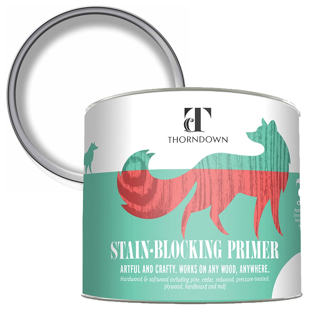 Keep your paint job looking great with Thorndown White Stain Blocking Primer. It is a high-performing water-based primer primarily developed for tannin and stain blocking on timber surfaces. The primer also blocks resin bleed and sap stains. Perfect for use with Thorndown’s UV clear and translucent wood tone wood paint colours, and semi-opaques such as Golden Somer, Rowan Berry Red and Sundowner Orange. It works on all untreated softwood and hardwood timber surfaces, including pine, cedar, redwood, plywood, MDF and hardboard. The primer is low in VOC and suitable for any application inside or outside. Quick drying – it dries in one hour in fine weather, only one coat is needed but you can apply a second on particularly resinous or troublesome wood, like very knotty woods or ones with high tannin bleed or leeching. Pack size: 750ml.
