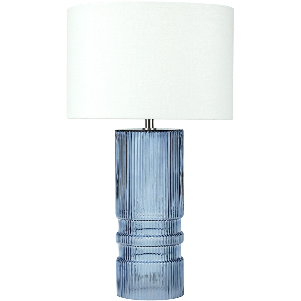 Add illuminating finishing touches to your decor with this Tide Blue Glass Table Lamp. Features a gorgeous glass base in blue with a white shade, the textured base allows light to saturate your space. Sleek and contemporary, the lamp makes an attractive centrepiece and is suitable for any modern bedroom, hallway or living room. Please click here to find our range of lightbulbs.