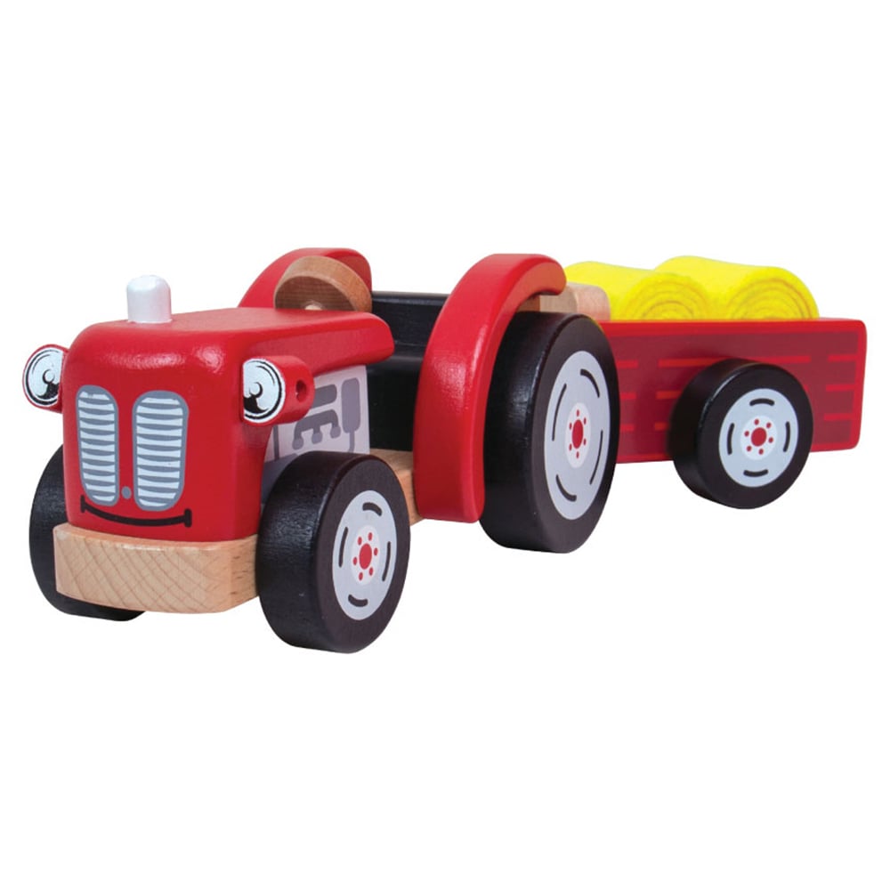 Give your little one the perfect playtime partner with this Tidlo Wooden Tractor and Trailer. This retro toy tractor features poseable headlights and a pivoting trailer with two felt hay bales. Also, once the hay has been removed, the trailer has plenty of room for all of your farm animals. Ensuring safety, the playset comes with rounded edges, corners, and wheels, making this set ideal for small hands. Tractor toys are a great way to encourage creative and imaginative play sessions. They help develop hand-eye coordination and fine motor skills. Durable and reliable, the set is made from high-quality, responsibly sourced materials and conforms to current European safety standards. Perfect to pair with the Tidlo Oldfield Farm, Tidlo Farm Animals, and Farm Family (sold separately).