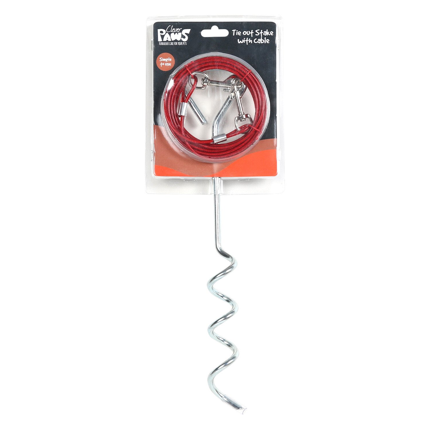 Allows your pets to wander and enjoy the outdoors while still being secure thanks to this Tie Out Stake with Cable. This product is made from Galvanised iron with a PVC coating and is rust-resistant. Place the stake vertically into the ground. Slowly push the stake into the soil twisting it in a clockwise direction. The spiral part of the stake should be completely hidden under the soil. Pull the stake to test how secure it is before use.