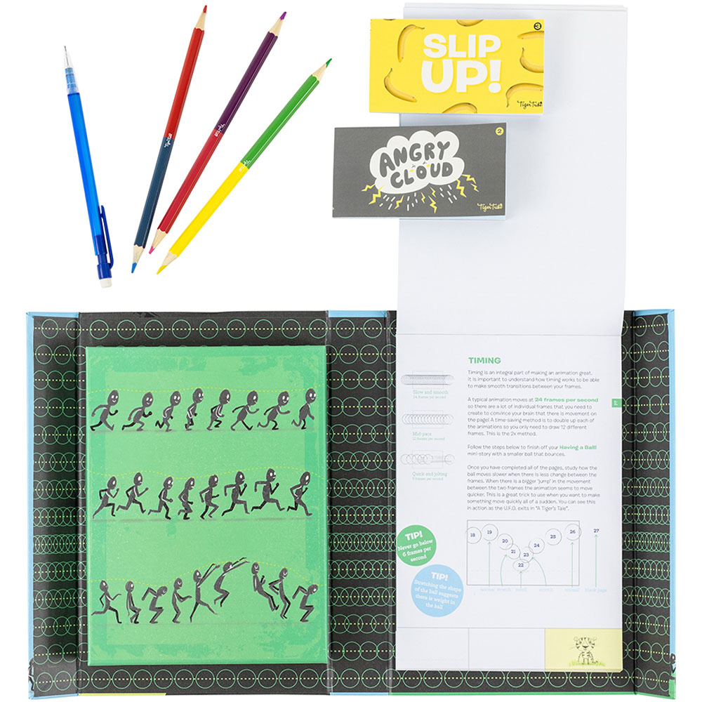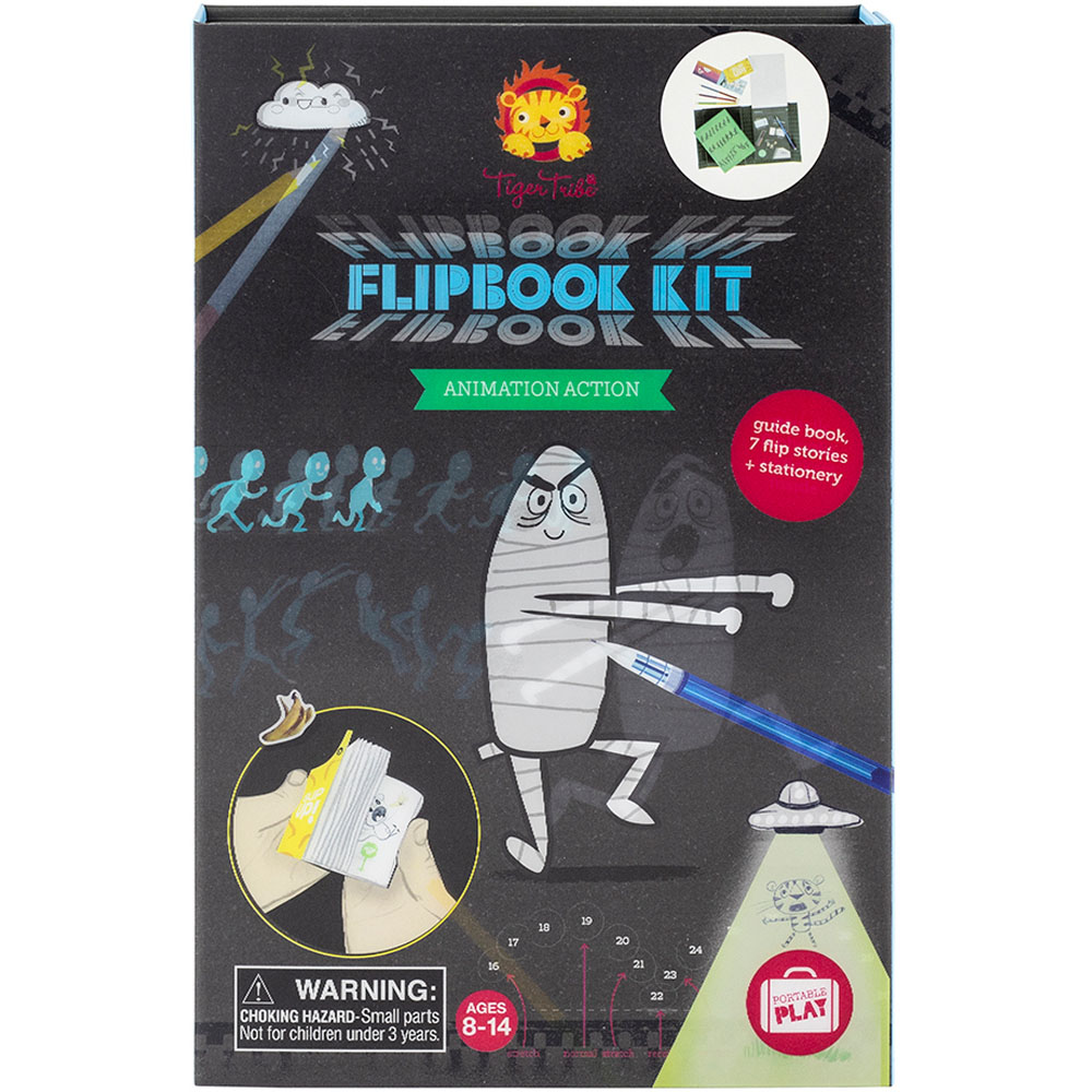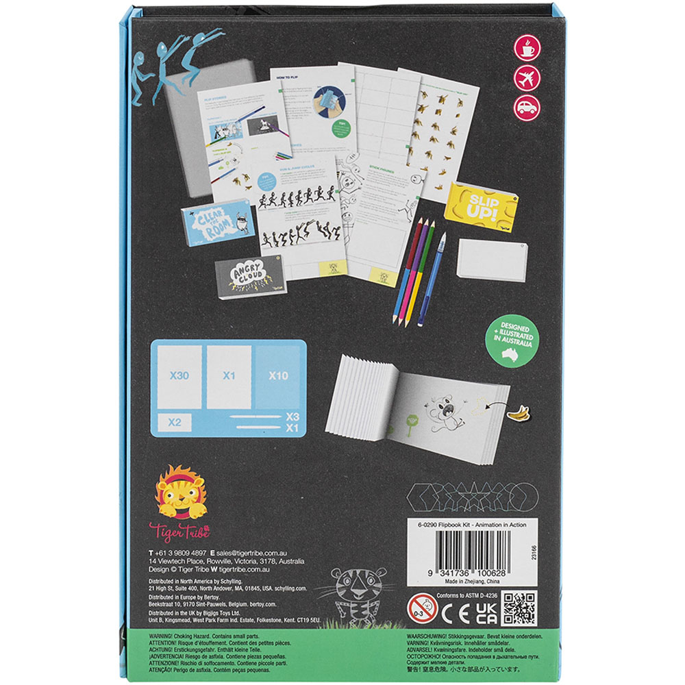 Bring this fun and adventure to your child's playtime with Tiger Tribe Flip Book Kit Animation Action. It has the tiger tribe’s flip book kit in which animation action is specifically designed to teach kids how to create the illusion of movement in their drawings. Kids will be guided through the fundamentals of animation, with lessons in planning and storyboarding, and shown how to illustrate movement and emotions. The Flip Book Kit comes with a 30-page guidebook bursting with ideas and opportunities for kids to create their own original stories. It consists of two double-sided flip books, stickers, tracing paper, colourful pencils and a mechanical pencil. This immersive art set is perfect for youngsters who love illustrating and storytelling. Inspires creativity, develops imagination and boosts confidence.