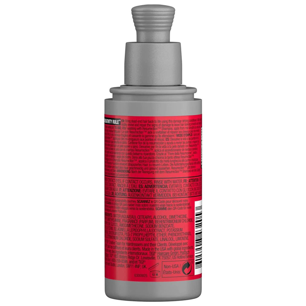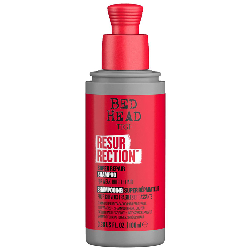 Bed Head By TIGI Mini Resurrection Shampoo and Conditioner Duo, Travel Size 100ml. Bed Head’s new Resurrection Shampoo, is new on the outside and just as epic on the inside. A powerful repairing formulation, not only designed with but used by salon professionals. Delivering salon results and salon experience at home. The Bed Head repair range has been crafted by professionals to leave damaged hair more resilient, smooth and healthy looking. This damage repair shampoo has patented technology, which helps a unique combination of haircare ingredients stay on the hair all day long. The shampoo helps repair dry damaged hair, and it nourishes, moisturizes and conditions hair. Great for weak, damaged and brittle hair. For best results, follow with the Resurrection Conditioner. Formulated with Amodimethicone to help repair external damage and smooth the hair cuticle so hair looks healthier and feels smooth, Behentrimonium Chloride for moisture, conditioning and nourishment and Selaginella Lepidophylla Extract, also known as 'the resurrection plant' with moisture retention properties.
