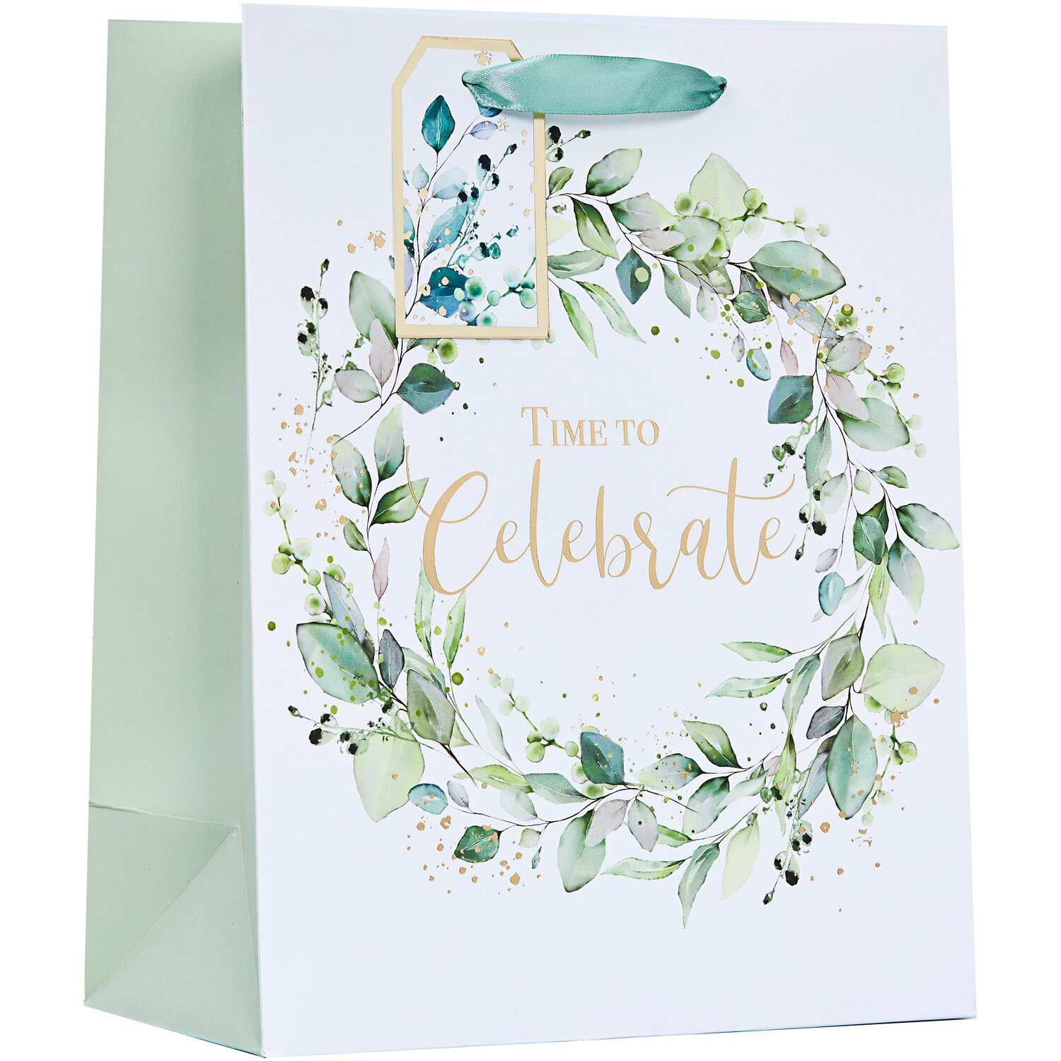 Add an extra special finishing touch to your presents with this gorgeous Time To Celebrate Gift Bag. Featuring a beautiful eucalyptus design with a matching gift tag and handles, this stunning bag is guaranteed to impress. Perfect for birthdays, baby showers, graduations and more, this bag is a must-have wrapping accessory.