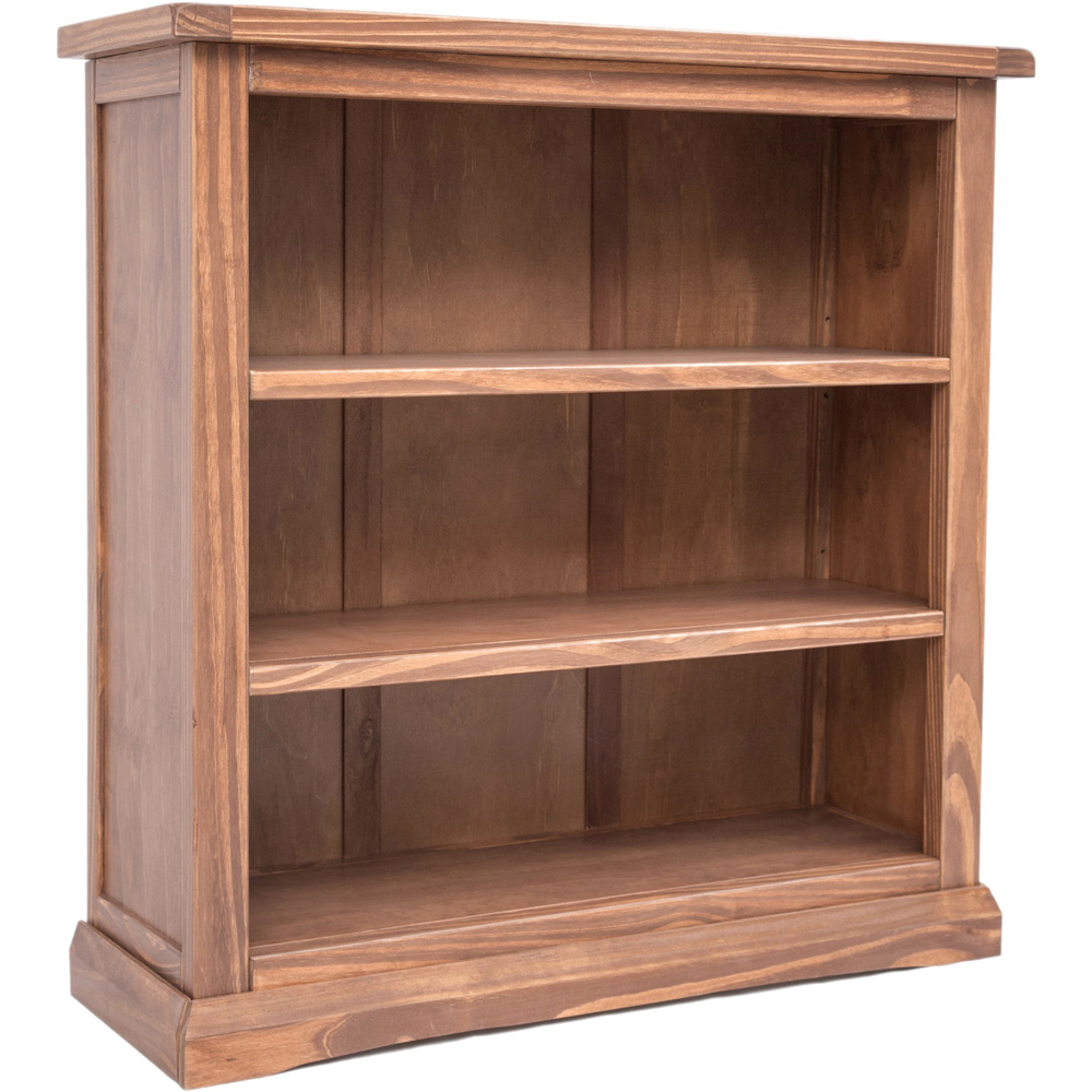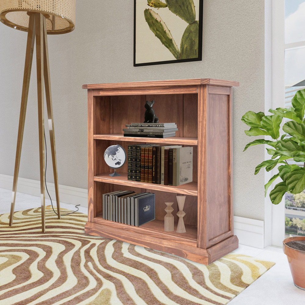 Add a rustic touch to your home decor with the Tirolo 3 Shelf Light Brown Bookcase. This elegant bookcase has a sturdy wooden top for keeping your favourite display item. It features three open shelves with decent space for keeping your CDs, DVDs or your book collection. The two central shelves are both adjustable to tailor the space to suit your requirements. The body is finished with an eco-friendly water-based lacquer. It is crafted using a combination of solid pine wood and veneers with a sturdy base for stability and support. This bookcase has a simple construction for easy home assembly. It is suitable for all types of traditional and contemporary interior spaces.