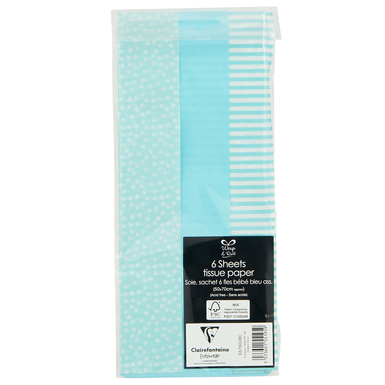 Add a touch of charm to your gifts with the Tissue Paper Baby Blue. This set of six sheets of acid-free paper is perfect for wrapping presents or adding a decorative flair. The fun prints are ideal for celebrating festive occasions and creating a memorable present