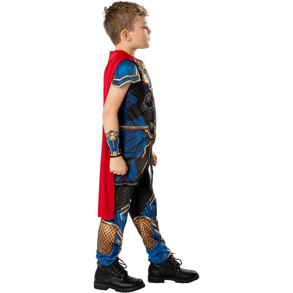 Channel the power and might of Thor in this Rubies Masquerade Kids Deluxe Thor Costume 3 to 4 Years. This costume is perfect for imaginative play and costume events, allowing your child to embark on epic quests and journey through realms. The costume includes a top and trousers with 3D padded armour pieces, a gold metallic print, a separate cape, and gauntlets. It is also ideal for all dress-up occasions, including Halloween, and will keep your child comfortable and cool. The costume has undergone comprehensive safety testing where applicable, meeting all relevant regulations.
