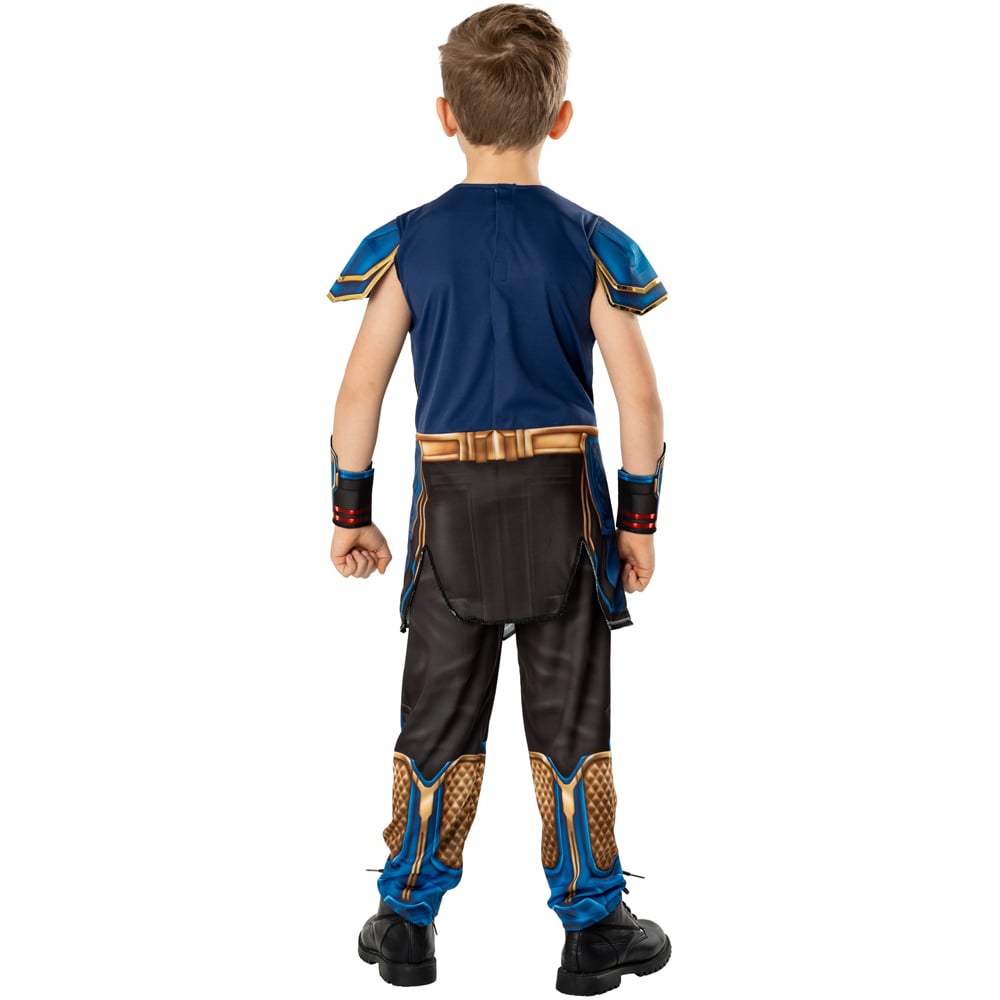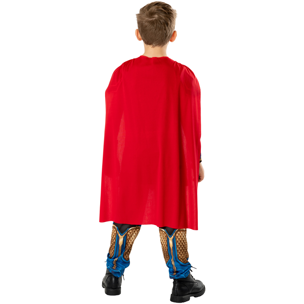 Channel the power and might of Thor in this Rubies Masquerade Kids Deluxe Thor Costume 7 to 8 Years. This costume is perfect for imaginative play and costume events, allowing your child to embark on epic quests and journey through realms. The costume includes a top and trousers with 3D padded armour pieces, a gold metallic print, a separate cape, and gauntlets. It is also ideal for all dress-up occasions, including Halloween, and will keep your child comfortable and cool. The costume has undergone comprehensive safety testing where applicable, meeting all relevant regulations.