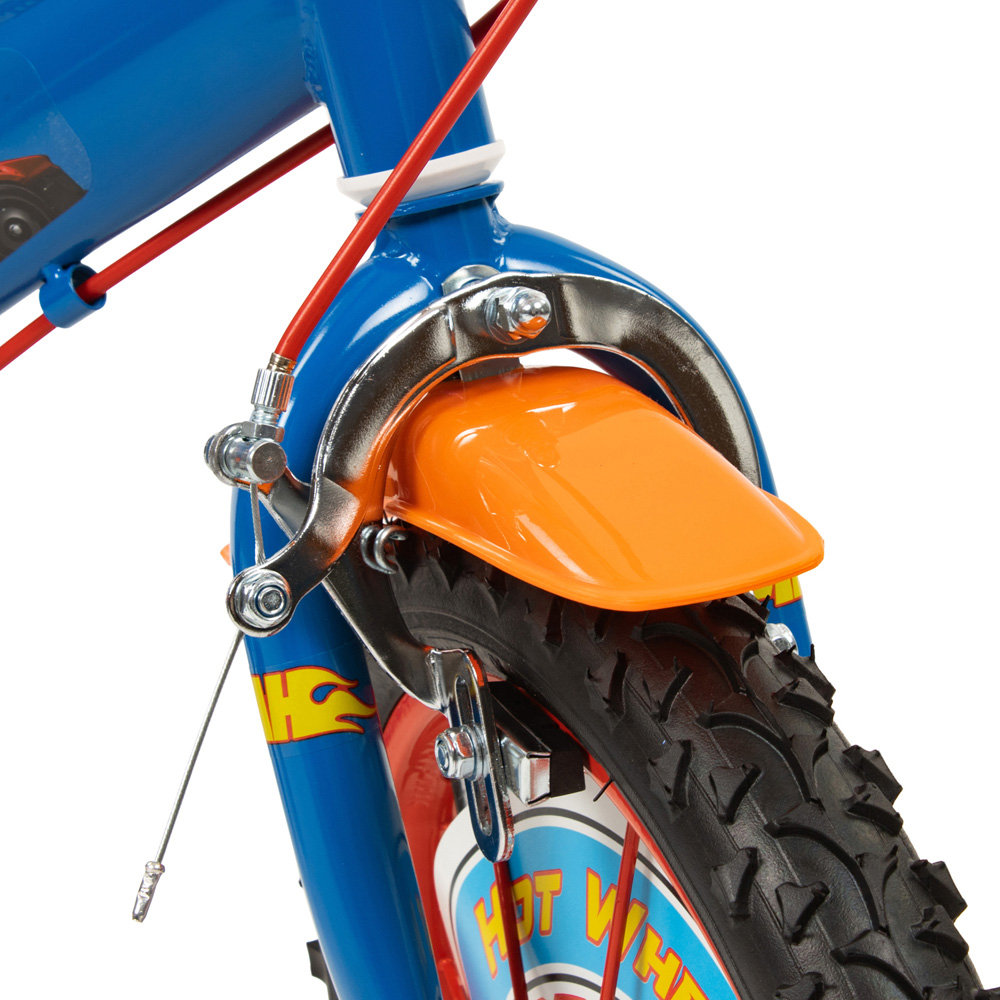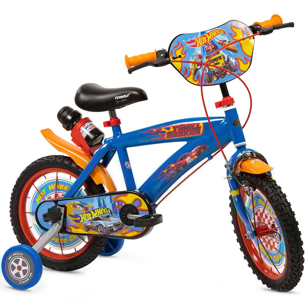 Get your little ones on an adventurous ride with this Toimsa 14 Inch Hot Wheels Freewheeling Bicycle. This Hot Wheels-licensed bicycle features pneumatic tyres with spoked wheels, mudguards, a front calliper brake and a rear drum brake which offer optimum safety. It also has removable stabilisers to keep them balanced through their learning process. Designed with utmost convenience in mind, the bicycle comes with a height-adjustable saddle from 100 to 110cm and handlebars for added comfort as they grow. It also has a rear drinks holder and bottle, a large Hot Wheels front shield and Hot Wheels decals. Suitable for ages four to six years, it's a perfect bike to help children learn.