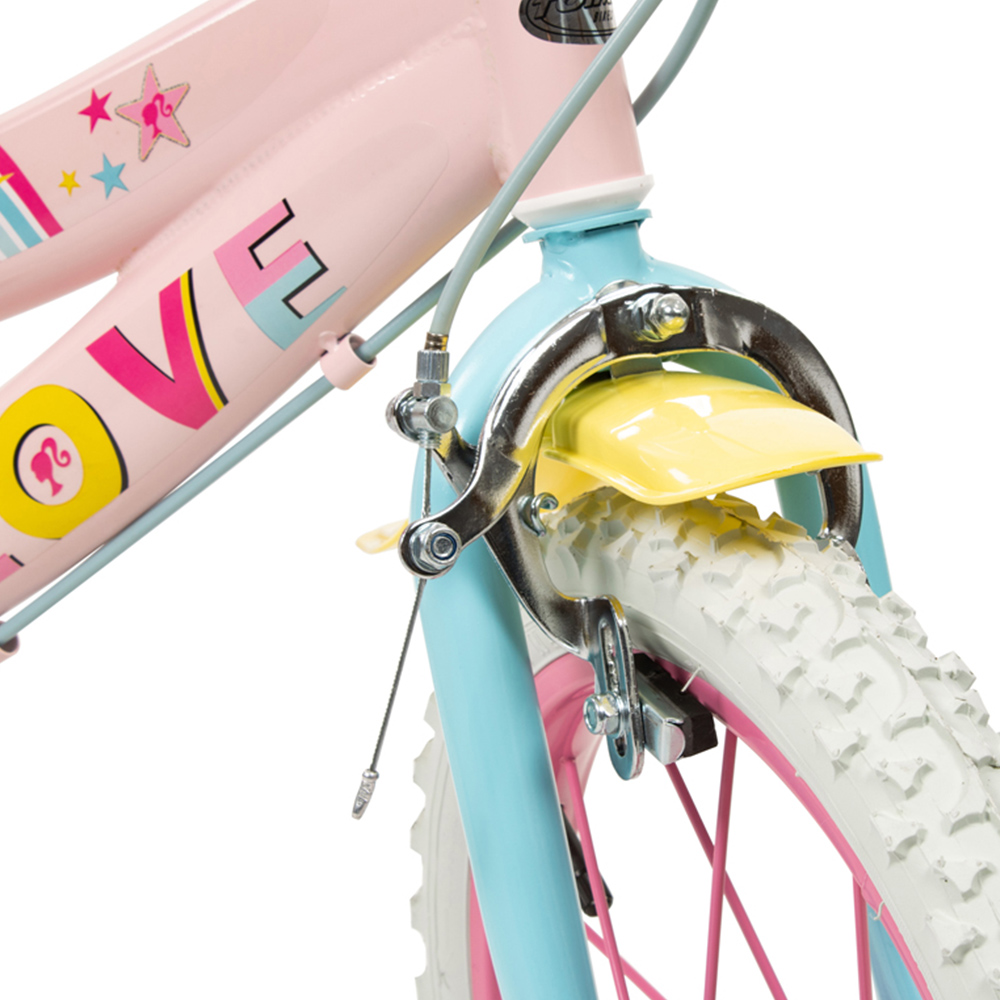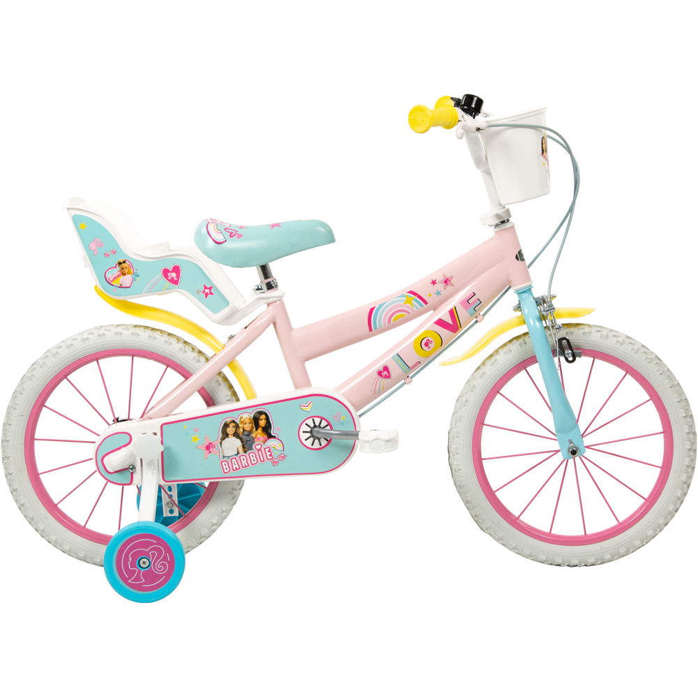 Get your little ones on an adventurous ride with this Toimsa 16 Inch Barbie Freewheeling Bicycle. This Barbie-licensed bicycle features pneumatic tyres with spoked wheels, mudguards, a front calliper brake and a rear drum brake which offer optimum safety. It also has removable stabilisers to keep them balanced through their learning process. Designed with utmost convenience in mind, the bicycle comes with a height-adjustable saddle from 110 to 120cm and handlebars for added comfort as they grow. It also has a rear doll carrier with a strap, a front basket and colourful Barbie decals to complete the look. Suitable for ages four to six years, it's a perfect bike to help children learn.