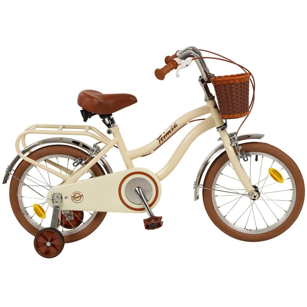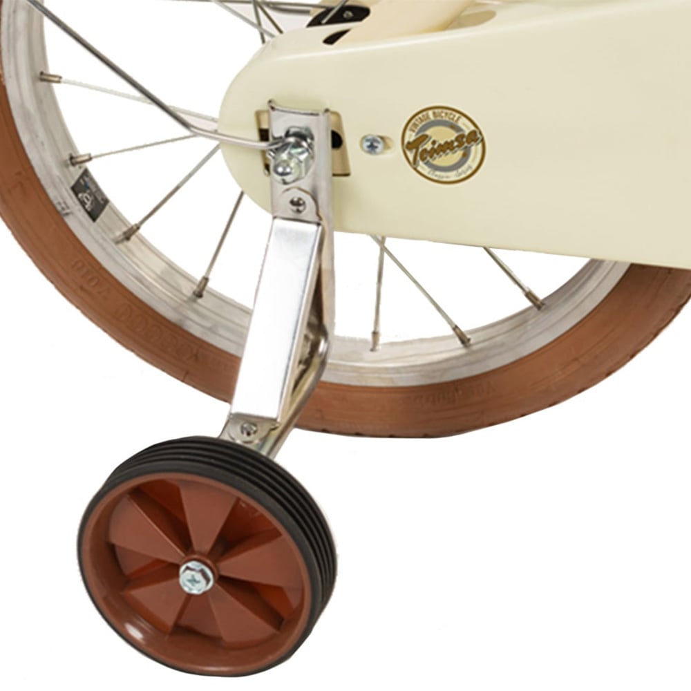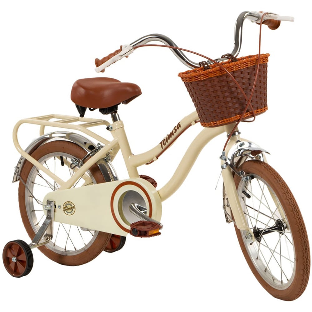 This retro inspired vintage bicycle in beige comes with a front and rear calliper brakes which offer optimum safety for children. it features pneumatic tyres with 16-inch spoked wheels, chrome mudguards and removable stabilisers. Suitable for ages between five to seven years, it comes with an adjustable sprung saddle and handlebars, a rear carrier rack and a front wicker style basket to complete the retro look. Suitable height range 110-120 cm.
